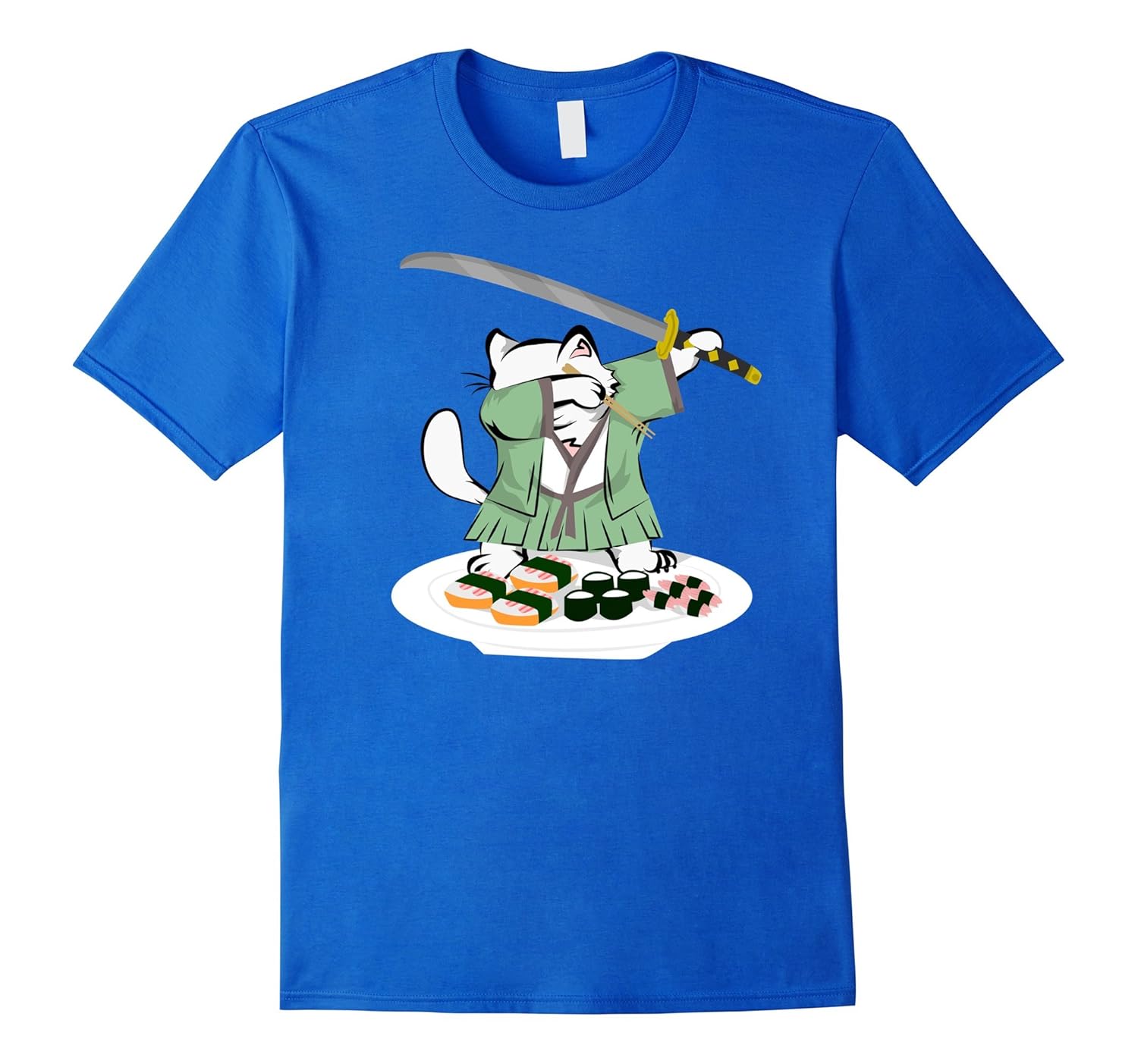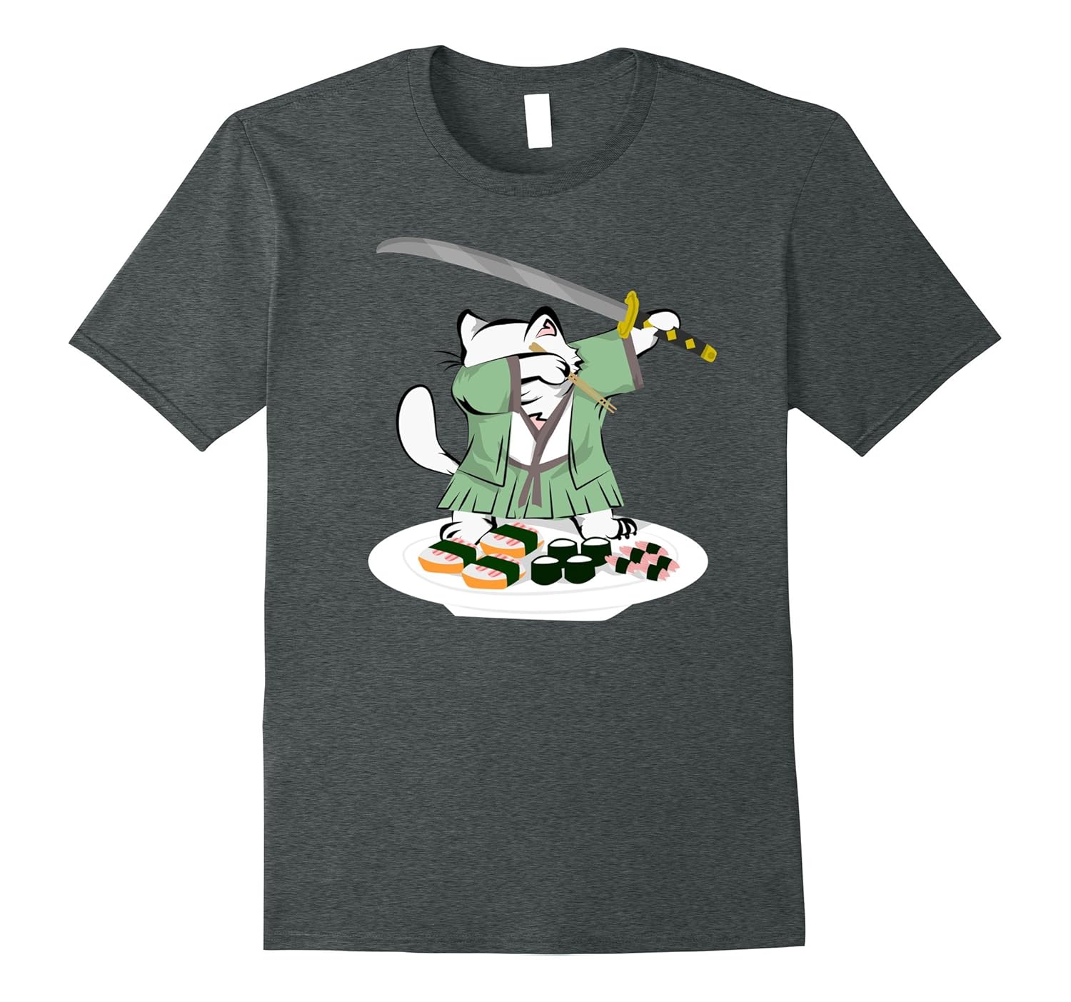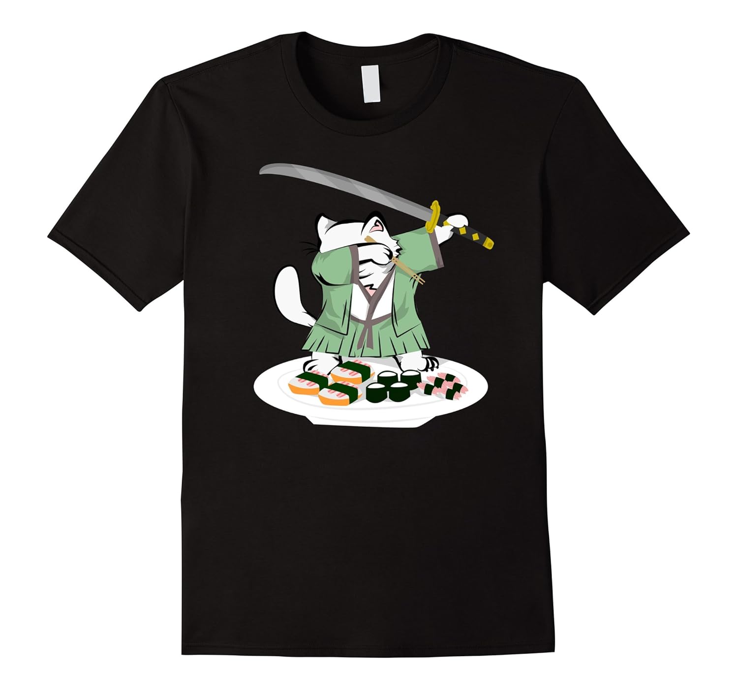 Dabbing Samurai Cat Sushi Lover Funny Meme Tshirt-ANZ