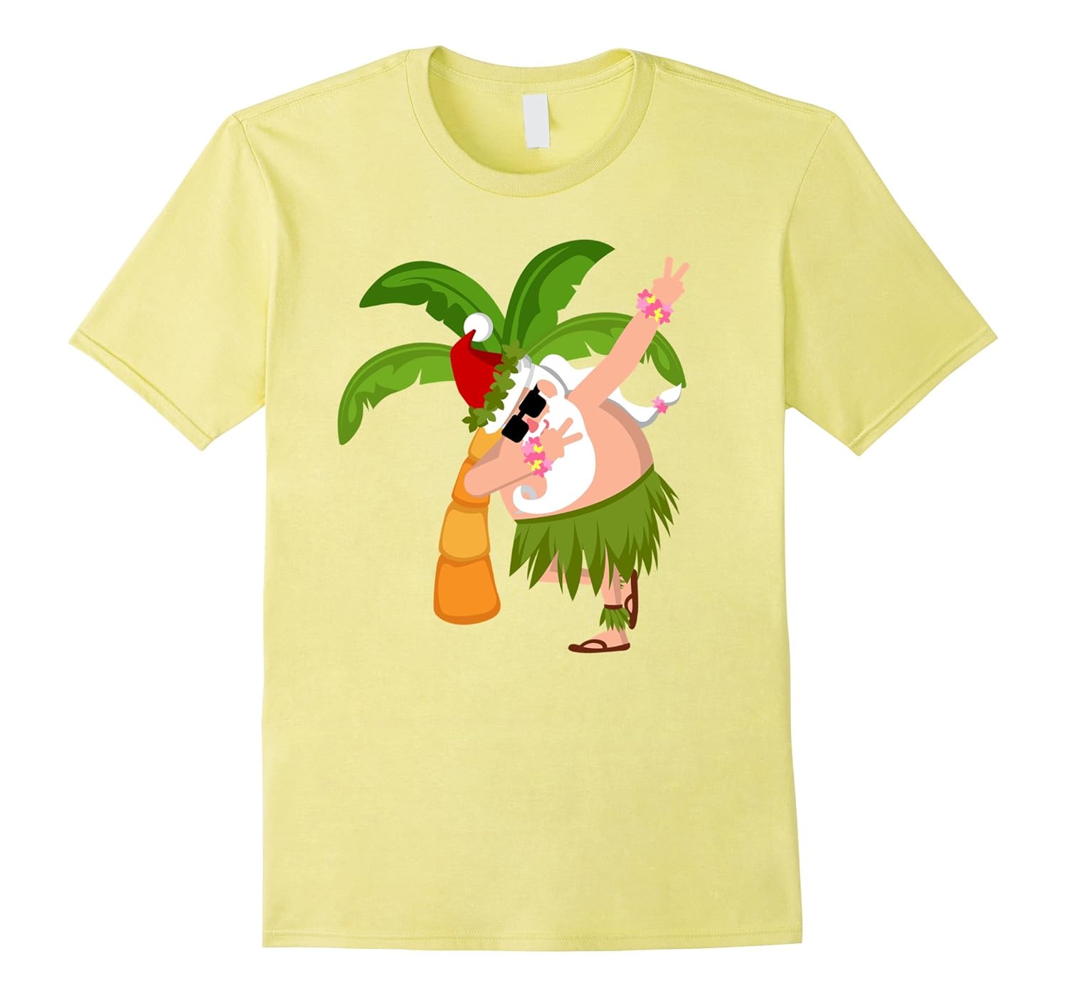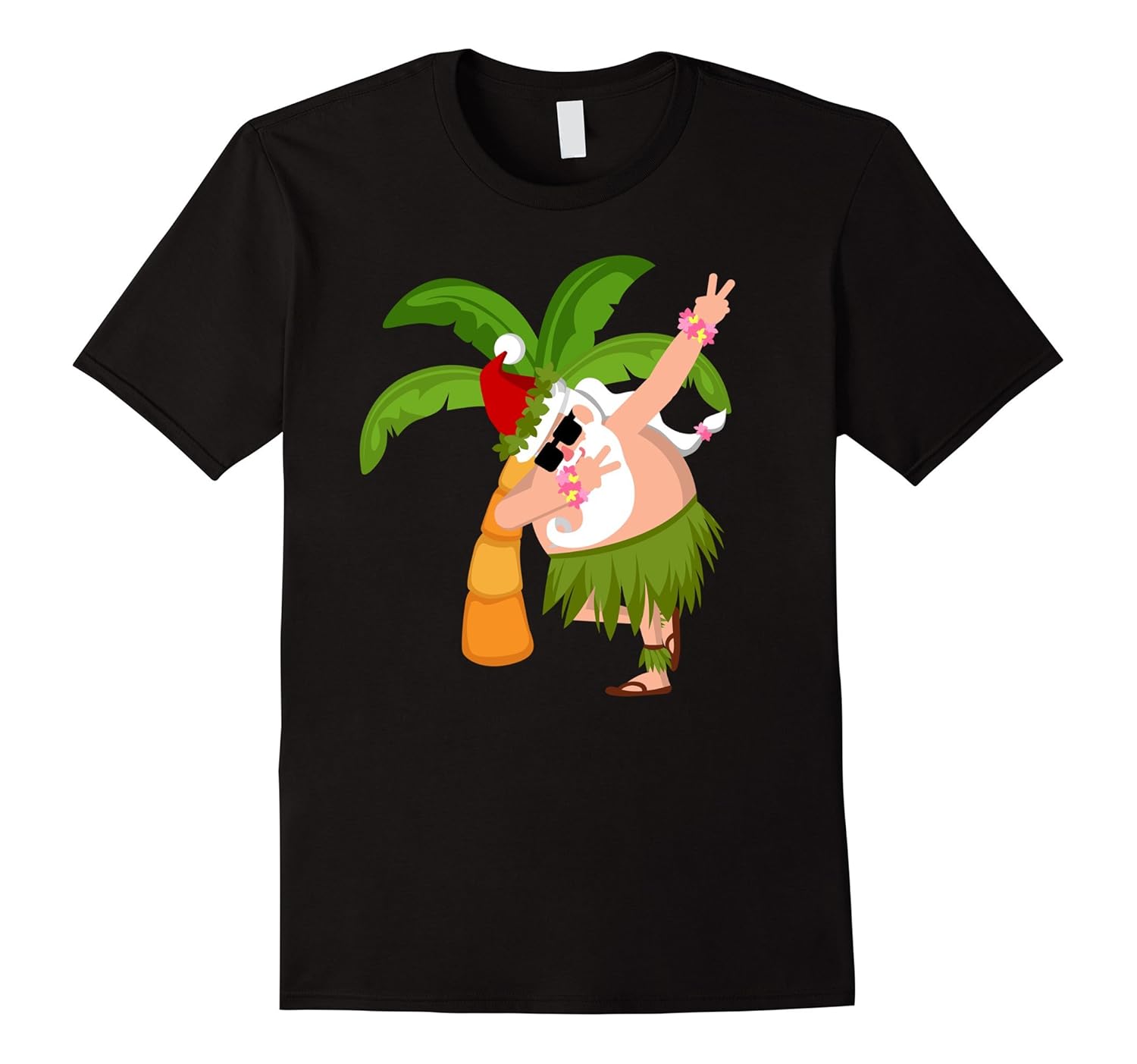 Solid colors: 100% Cotton; Heather Grey: 90% Cotton, 10% Polyester; All Other Heathers: 65% Cotton, 35% Polyester, Imported, Machine wash cold with like colors, dry low heat, PAPAHUGand;1P Merry Christmas with this summer spirit Hawaii Santa t-shirt wearing hula skirt and doing hip-hop dab dance by the coconut palm tree. Let celebrate a beach sea ocean surfing Christmas theme party with sunglasses. Say Mele Kalikimaka. Lightweight, Classic fit, Double-needle sleeve and bottom hem