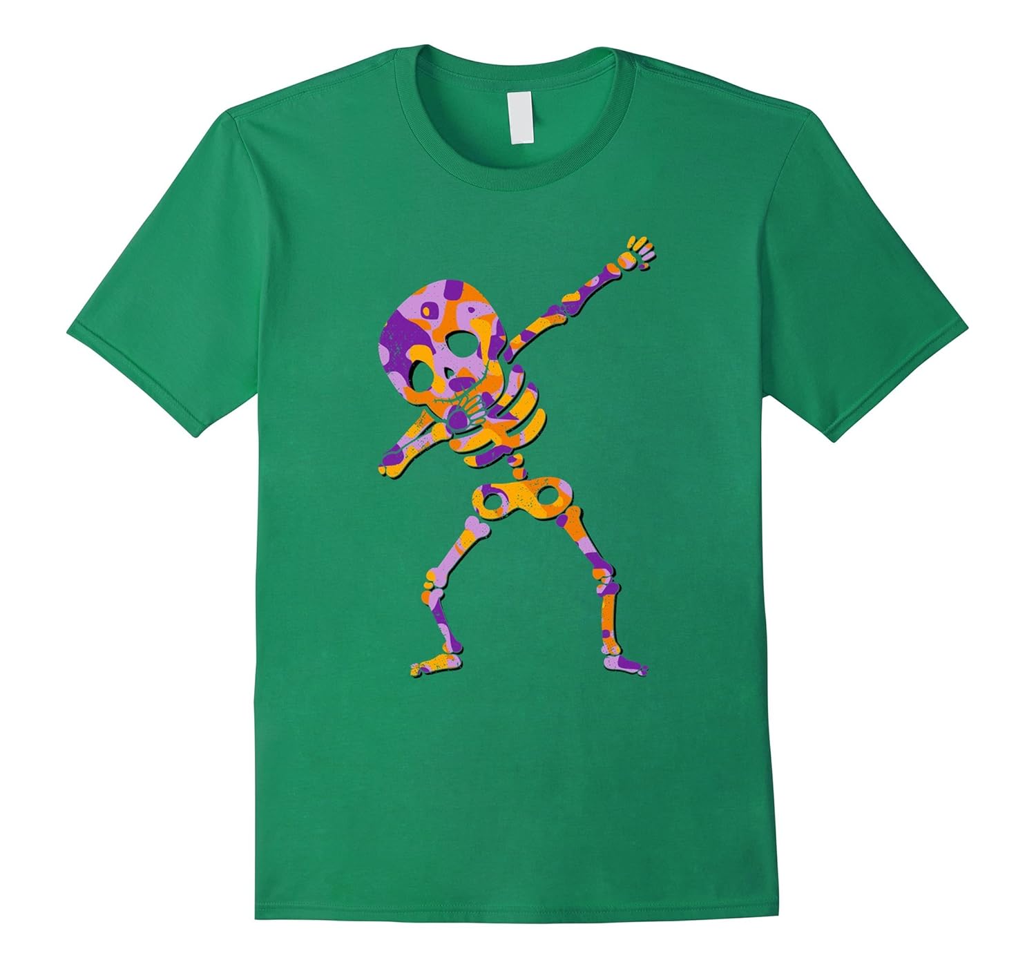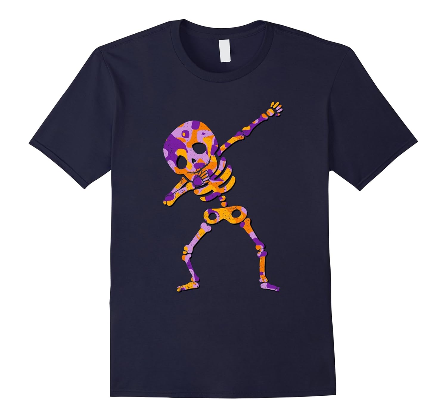 Solid colors: 100% Cotton; Heather Grey: 90% Cotton, 10% Polyester; All Other Heathers: 65% Cotton, 35% Polyester, Imported, Machine wash cold with like colors, dry low heat, Awesome graphic Halloween theme t-shirt featuring a cartoonish spooky weird camo skeleton, witches purple and pumpkin orange shades, showing off the anatomy of the dab hip hop dance move. This Halloween 2017 it”s time for some creepy undead dab moves!, Great last-minute costume tshirt for October 31st trick-or-treating, skeleton, skull and crossbones party or if you love zombies, vampires and dark stuff. Great gift idea for any medical professional, fan of horror movies or kids and teens who love dabbing, Lightweight, Classic fit, Double-needle sleeve and bottom hem