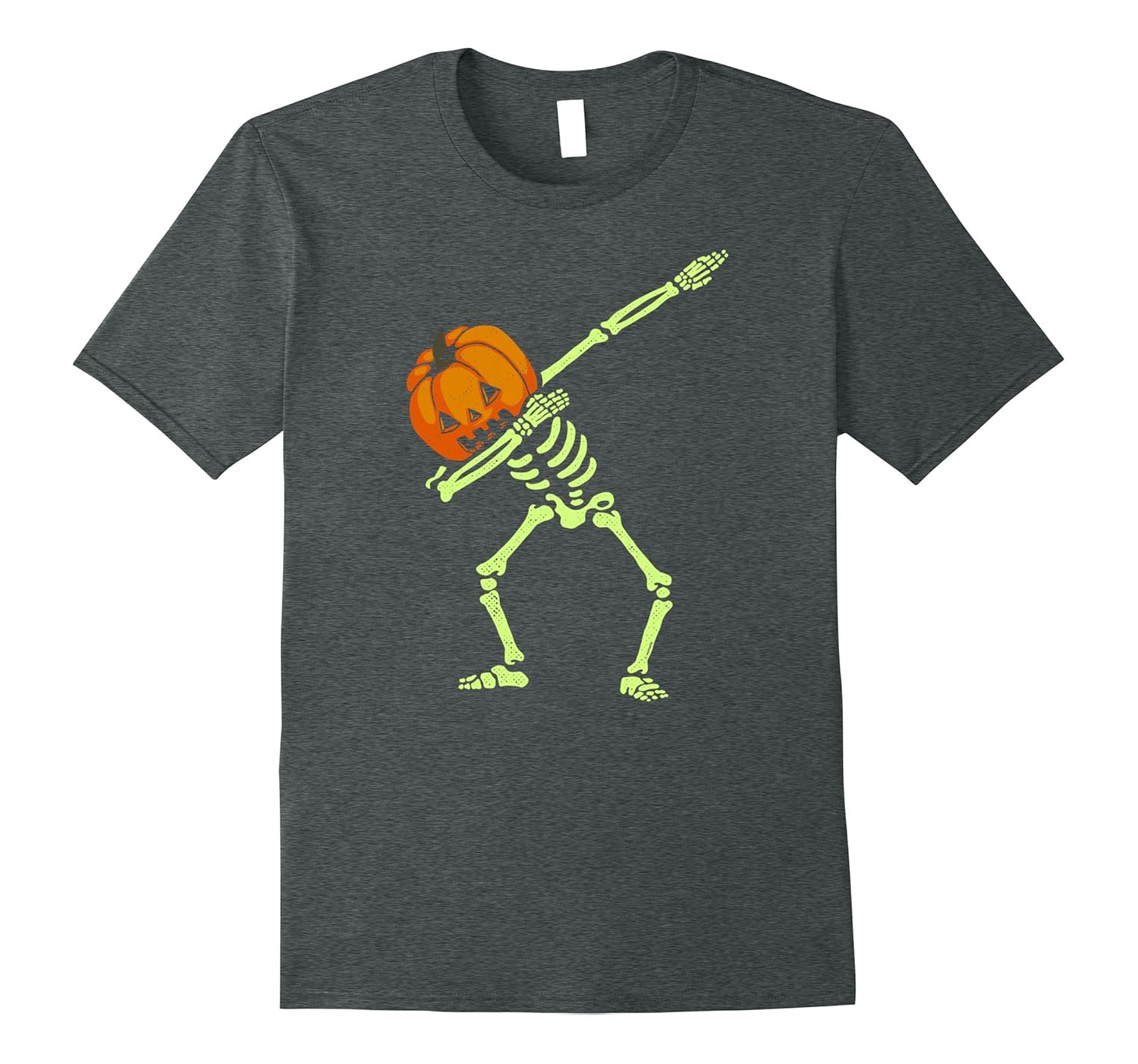 Solid colors: 100% Cotton; Heather Grey: 90% Cotton, 10% Polyester; All Other Heathers: 50% Cotton, 50% Polyester; Imported; Machine wash cold with like colors, dry low heat; Dabbing Pumpkin Shirt! Halloween party costume for kids boys girls teens men Andamp; women. Dabbing Skeleton Pumpkin Head Shirt Andamp; Dabbing Halloween Creatures Shirt. Dab pose Dab Hip hop skeleton tshirt. Related: Dabbing Unicorn Andamp; Dabbing Pug shirts!; Funny Gift for Halloween! Skeletons Skulls clothing for boys girls kids. Music emoticon dance Skeleton gifts Cute Skeleton kids shirt Skull mask for children. Pet cat dog pug, Dabbing Skull face mask Deal with it emoji skulls and bones, crossbones shirt.; Lightweight, Classic fit, Double-needle sleeve and bottom hem