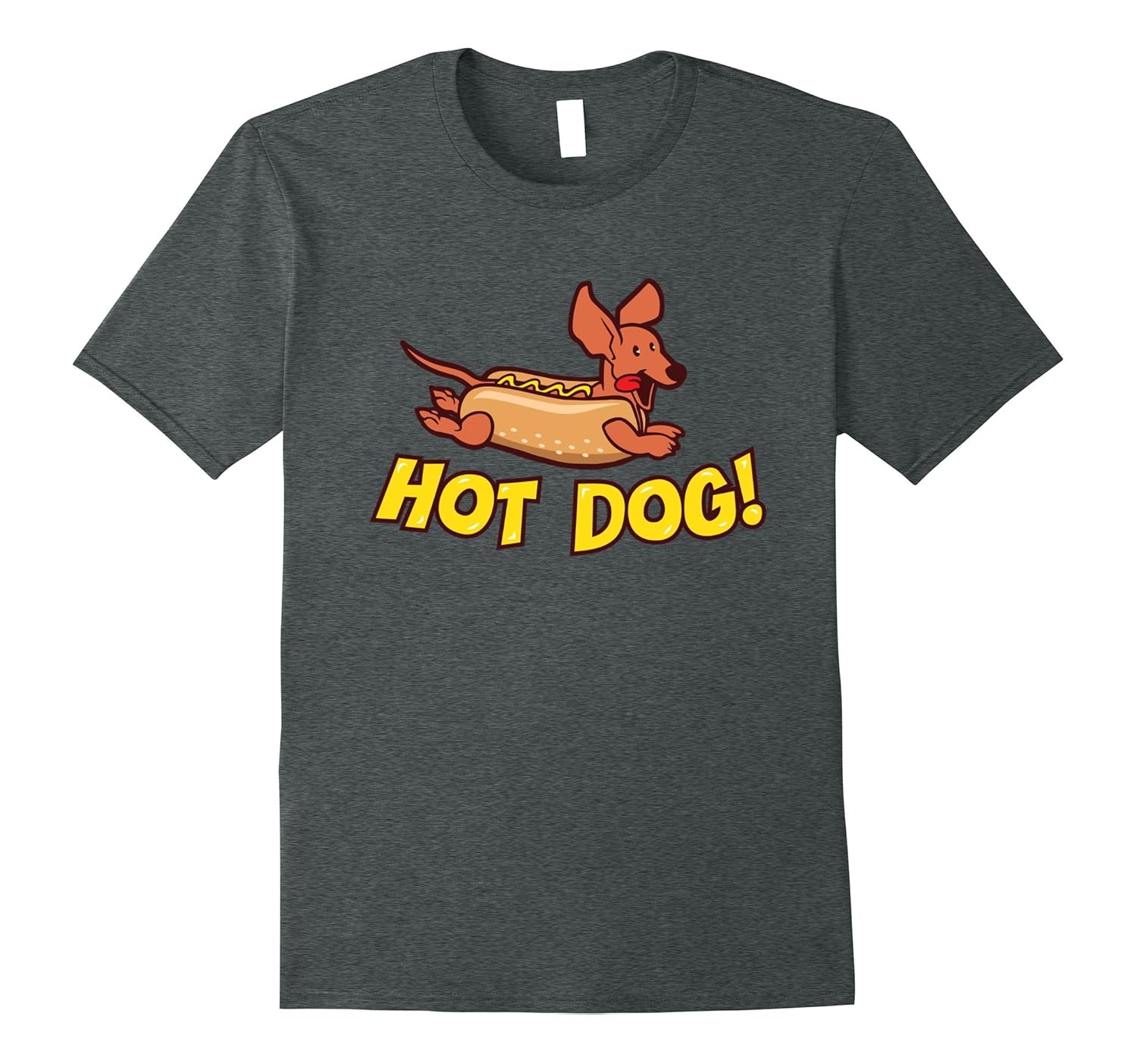 Solid colors: 100% Cotton; Heather Grey: 90% Cotton, 10% Polyester; All Other Heathers: 65% Cotton, 35% Polyester, Imported, Machine wash cold with like colors, dry low heat, Shirt features a Dachshund (aka “Wiener Dog”) in a hot dog suit jumping over the words “Hot Dog!”. Great for Halloween or as a Christmas or birthday gift for dachshund lovers. This funny wiener dog shirt is appropriate for adults, teens and kids, and is available in sizes and styles for men, women and kids. Please refer to the image with the size charts in order to ensure you select a comfortable fit. Lightweight, Classic fit, Double-needle sleeve and bottom hem