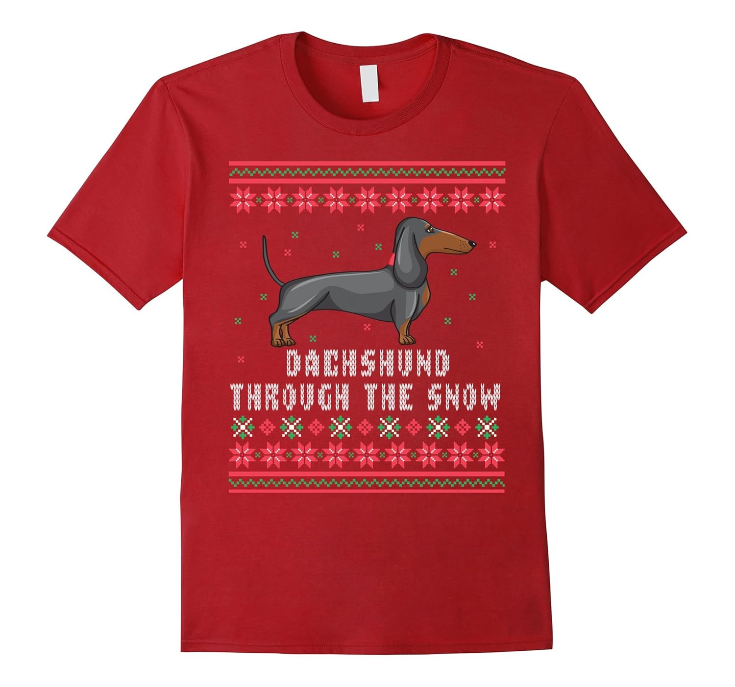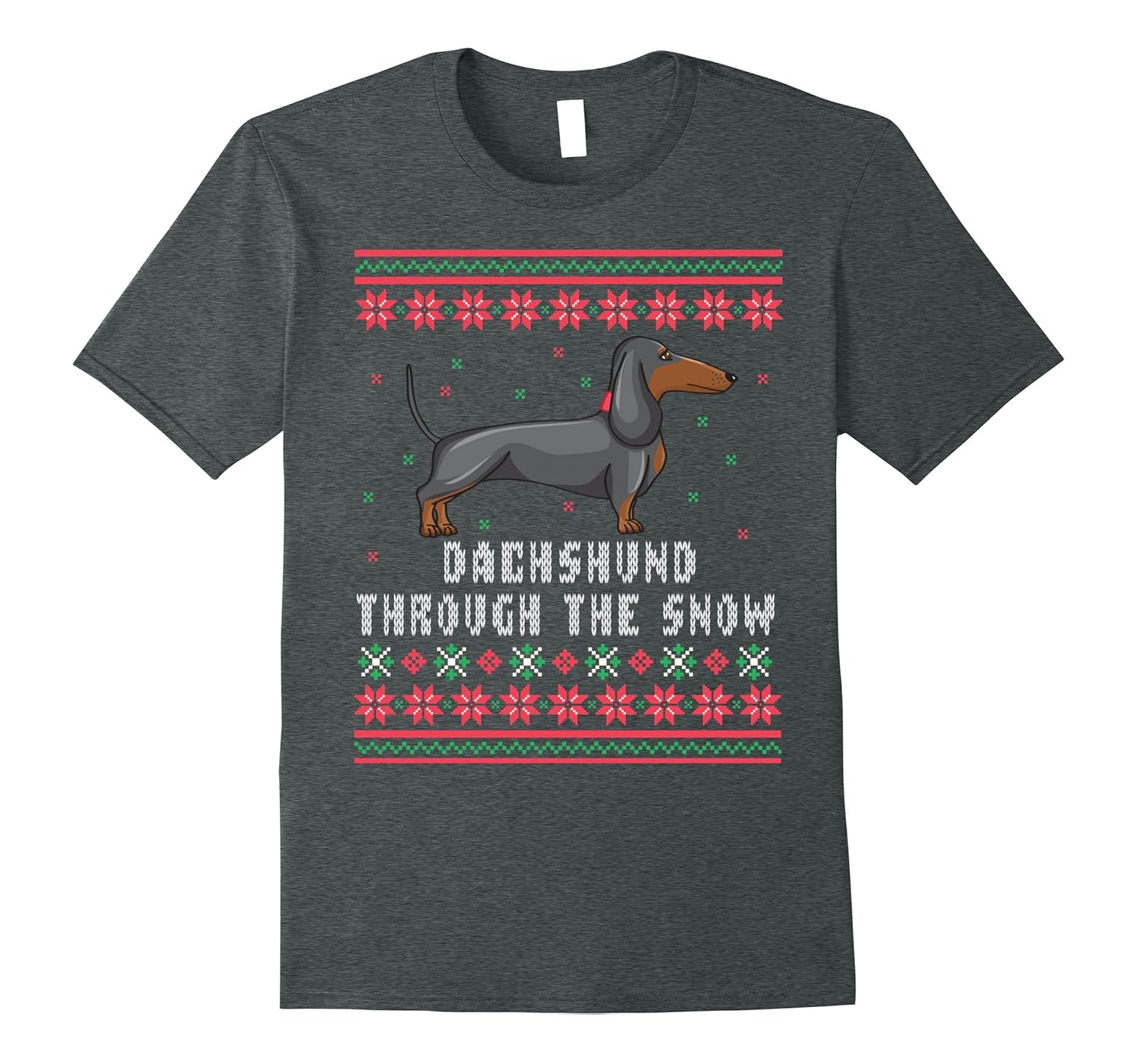 Solid colors: 100% Cotton; Heather Grey: 90% Cotton, 10% Polyester; All Other Heathers: 65% Cotton, 35% Polyester, Imported, Machine wash cold with like colors, dry low heat, Dachshund Through The Snow Ugly Xmas T-Shirt, This Dachshund Through The Snow Ugly Sweater Style T-Shirt features a cute Daschund Puppy. Lightweight, Classic fit, Double-needle sleeve and bottom hem
