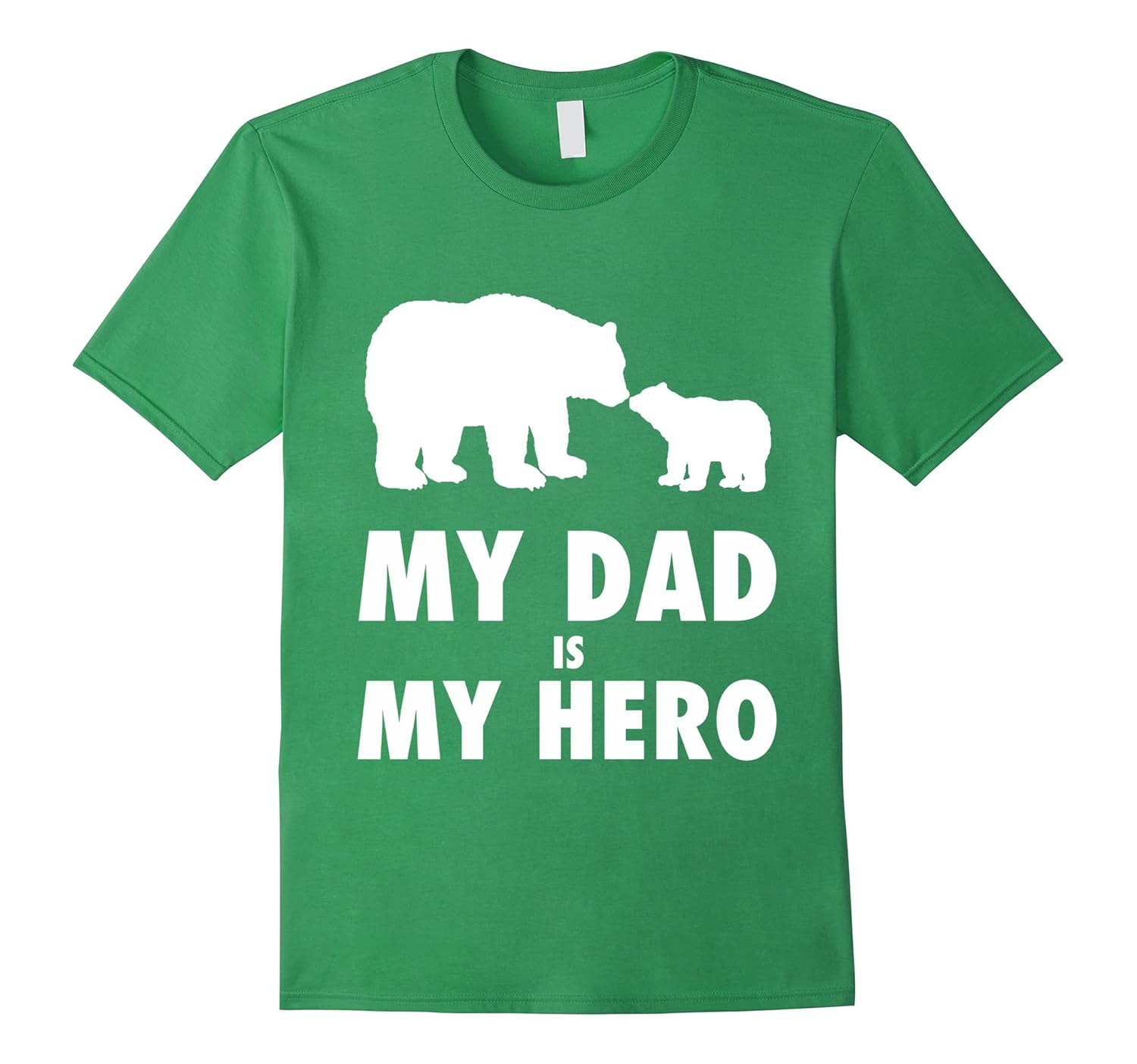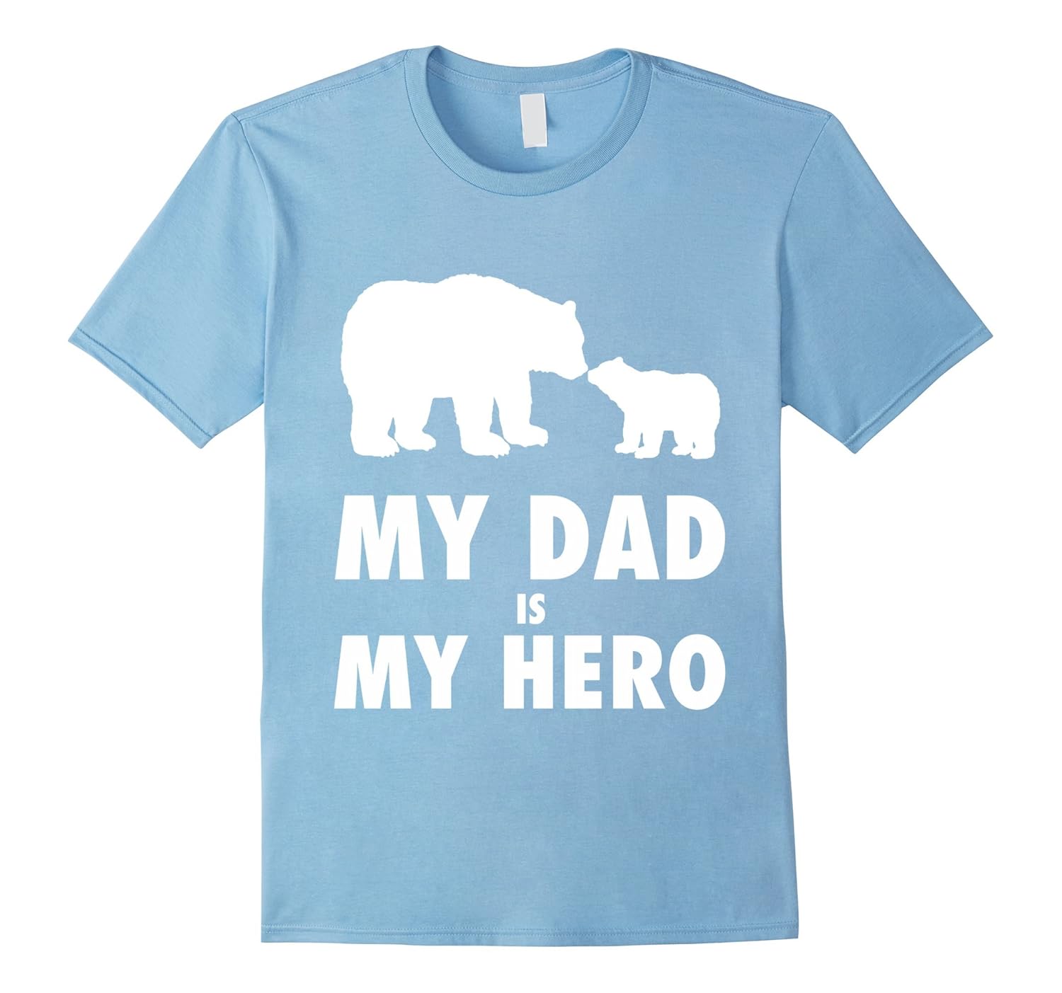 Solid colors: 100% Cotton; Heather Grey: 90% Cotton, 10% Polyester; All Other Heathers: 50% Cotton, 50% Polyester; Imported; Machine wash cold with like colors, dry low heat; Get this gift for upcoming Fathers Day, Mothers Day or even Christmas! Awesome perfect gift for kids, big kids, baby, toddler, daughters, sons and mom from your daddy, dad, papa, father, father in law, husband, boyfriend, grandpa, friend on Fathers day!; My Dad Is My Super Hero! This Awesome Vintage Style Daddy Shirt is designed and printed to be fitted. For a more loose fit, please order a size up. Great gift! Perfect gift for all proud people! Exclusive Design with white bear dad and son.; Lightweight, Classic fit, Double-needle sleeve and bottom hem