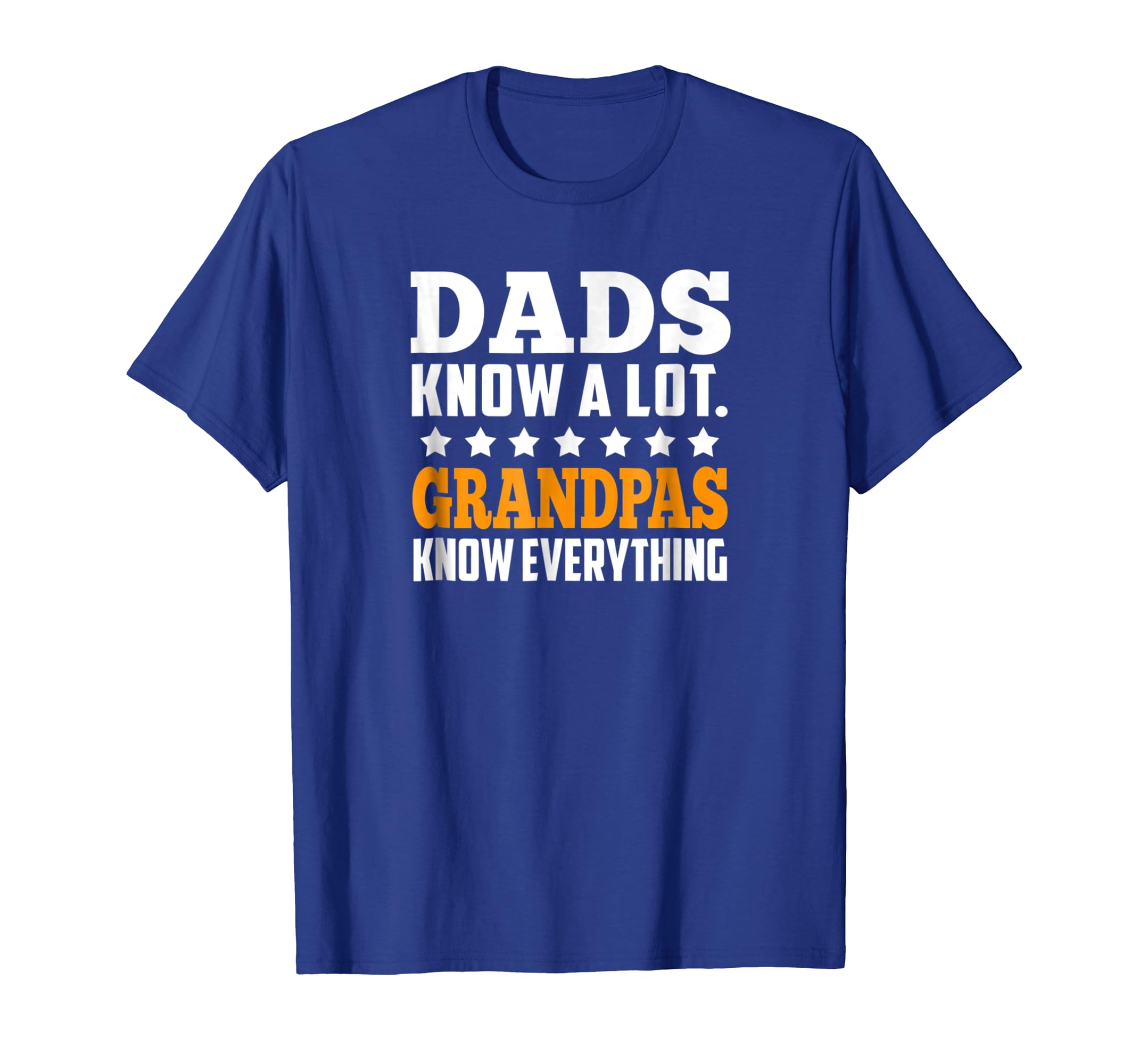 Solid colors: 100% Cotton; Heather Grey: 90% Cotton, 10% Polyester; All Other Heathers: 50% Cotton, 50% Polyester; Imported; Machine wash cold with like colors, dry low heat; Dads Know A Lot Grandpas Know Everything T Shirt; shirt for grandpas, funny grandpas t shirt, grandpas t shirt, gift for grandpas, best gift for grandpas, grandpas know everything; Lightweight, Classic fit, Double-needle sleeve and bottom hem