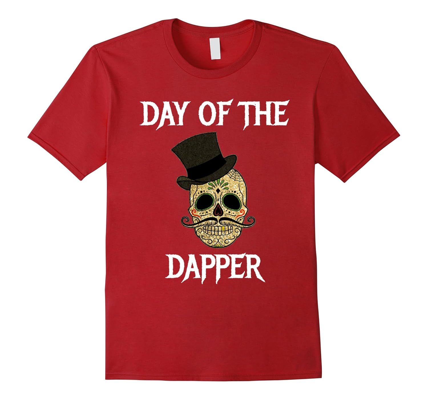 Solid colors: 100% Cotton; Heather Grey: 90% Cotton, 10% Polyester; All Other Heathers: 50% Cotton, 50% Polyester; Imported; Machine wash cold with like colors, dry low heat; Dapper day of the dead skull with moustache and top hat for guys, men and women who love the dapper clothing style. Perfect for wearing trick or treating to Halloween parties.; For a more comfortable fit order one size up.; Lightweight, Classic fit, Double-needle sleeve and bottom hem