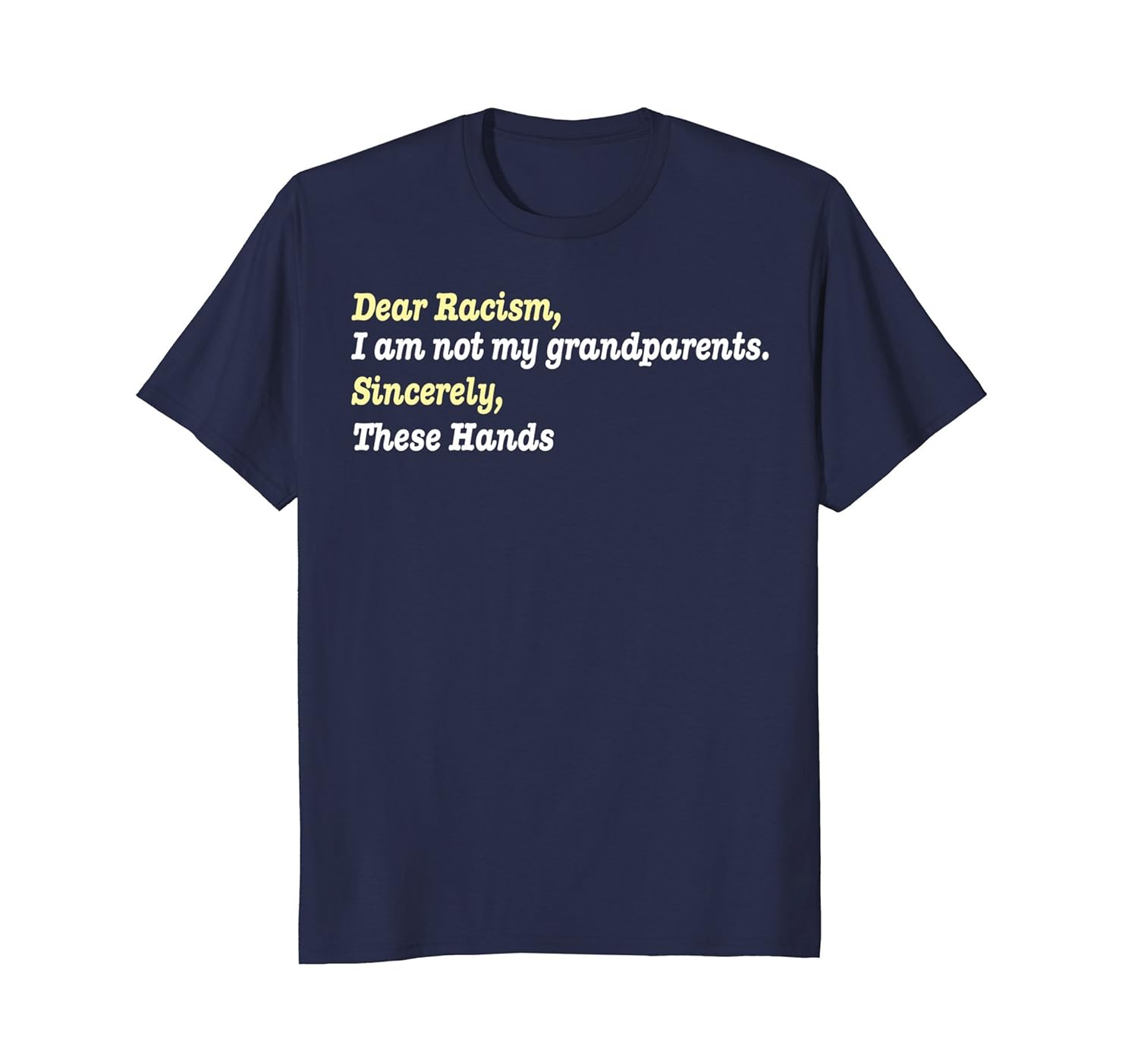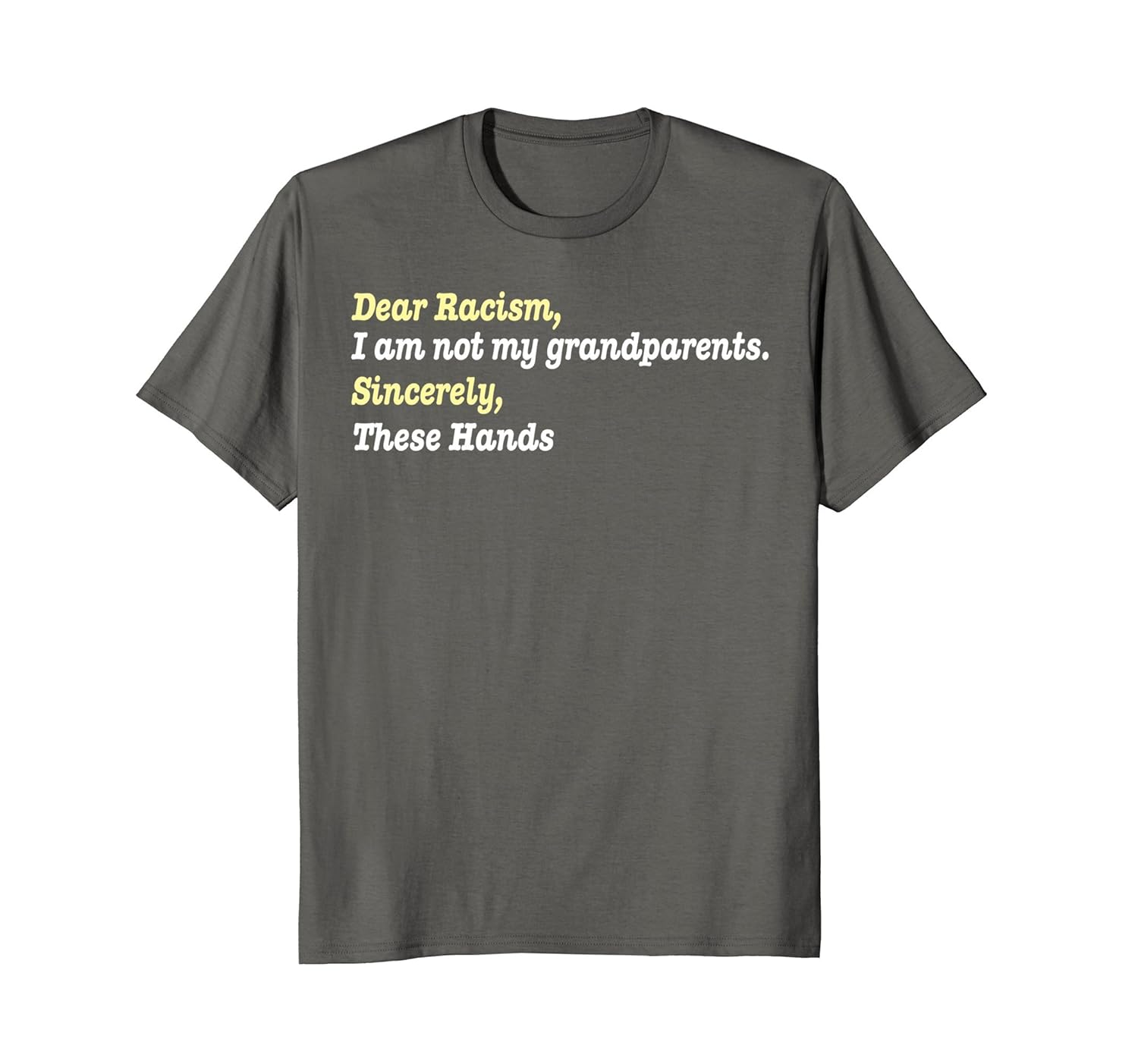 Solid colors: 100% Cotton; Heather Grey: 90% Cotton, 10% Polyester; All Other Heathers: 50% Cotton, 50% Polyester; Imported; Machine wash cold with like colors, dry low heat; Official racist t shirts funny .Dear Racism,I am not my grandparents Sincerely,These Hand,dear racism shirt; Lightweight, Classic fit, Double-needle sleeve and bottom hem