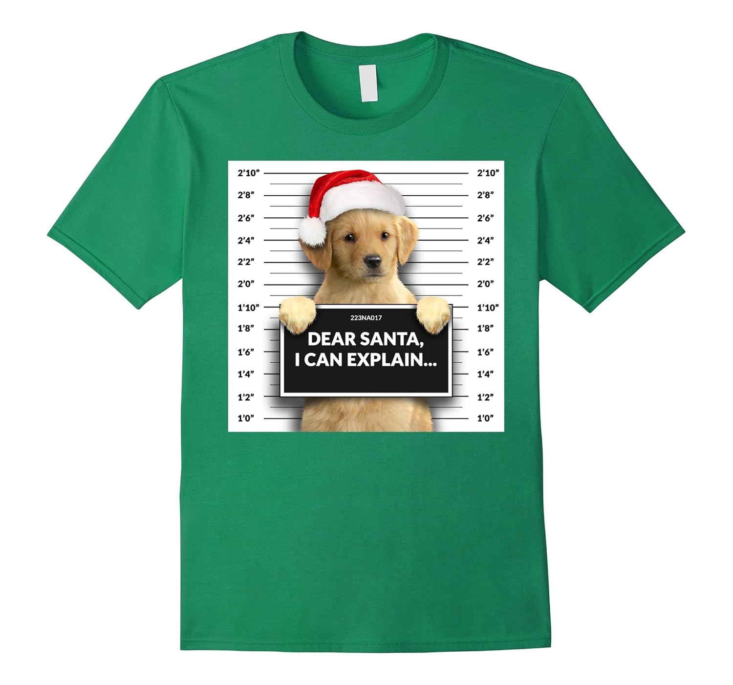 Solid colors: 100% Cotton; Heather Grey: 90% Cotton, 10% Polyester; All Other Heathers: 65% Cotton, 35% Polyester, Imported, Machine wash cold with like colors, dry low heat, Perfect Christmas Tshirt when you love ugly Christmas Sweater or funny weird Xmas Present. Cute Golden Retriever with Santa Hat holding a sign. Golden Retriever Mugshot Shirt for Winter Wonderland. Funny Christmas Mugshot for animal lovers. Gag Xmas Tee to make everyone laugh. Merry Christmas to all Retriever Puppy fans. Dear Santa i can Explain Shirt. Best gift if you are nice or naughty. Must have Christmas Tshirt for dog owner gift. Funny Golden Retriever Puppy Shirt, Lightweight, Classic fit, Double-needle sleeve and bottom hem