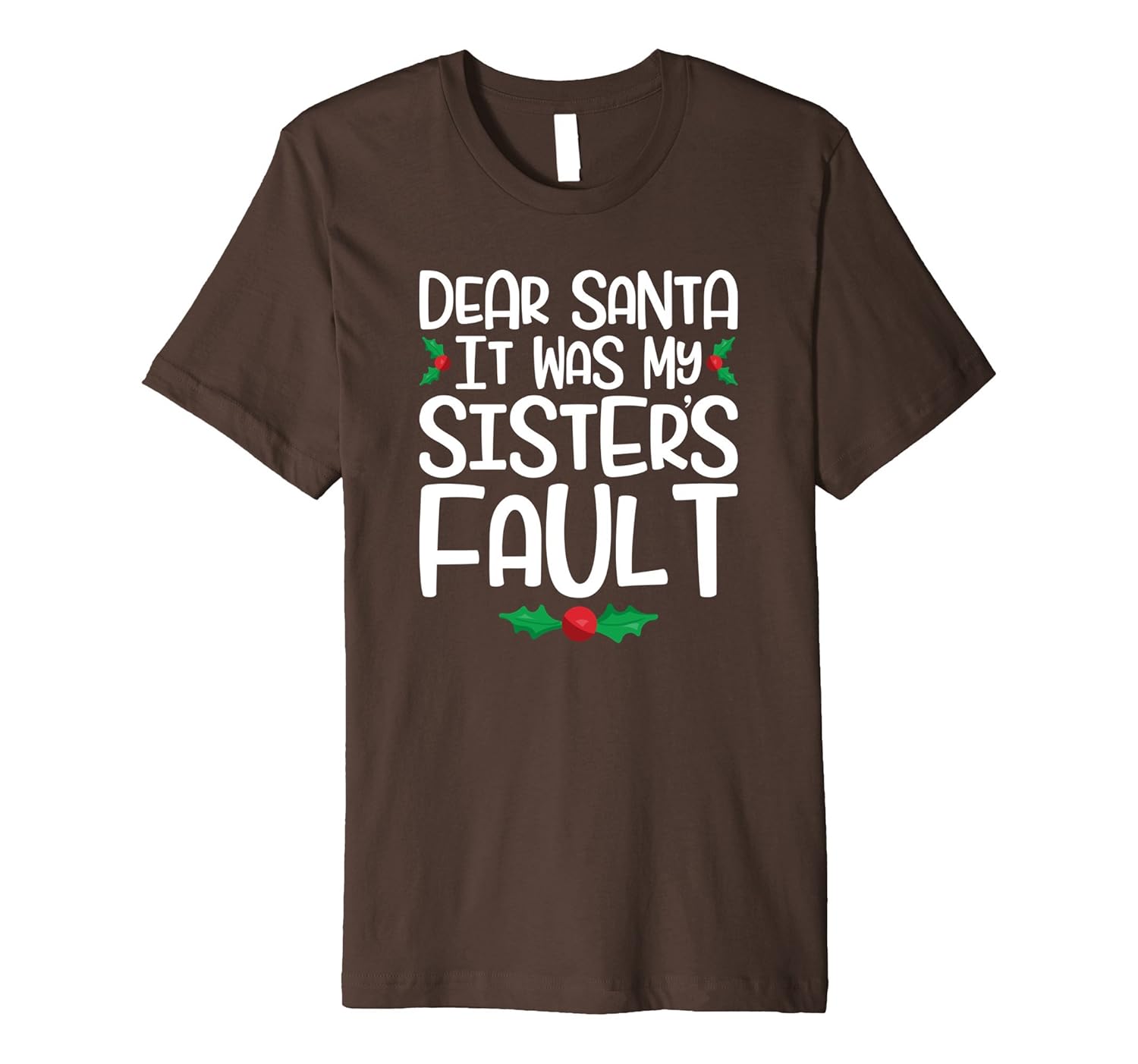 Solid colors: 100% Cotton; Heather Grey: 90% Cotton, 10% Polyester; All Other Heathers: 58% Cotton, 42% Polyester; Imported; Machine wash cold with like colors, dry low heat; Dear Santa It Was My Sisters Fault Funny Christmas Shirt. A funny tee for the office Christmas party or Christmas Day. An ideal present sure to make people smile at your Christmas Outfit. Tell the world I Love Christmas!; Fit: Slim (consider ordering a larger size for a looser fit); Be festive and Merry this holiday season with this unique Christmas gift idea for: Men, Women, Toddlers, Kids, Boys, Girls, Mom, Dad, Sister, Brother, Husband, Wife, Boyfriend, or Girlfriend.; This premium t-shirt is made of lightweight fine jersey fabric