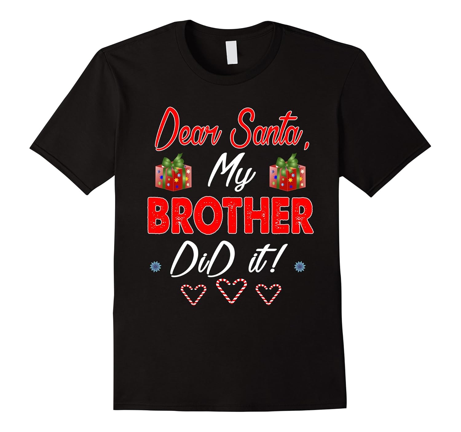 Solid colors: 100% Cotton; Heather Grey: 90% Cotton, 10% Polyester; All Other Heathers: 65% Cotton, 35% Polyester, Imported, Machine wash cold with like colors, dry low heat, Dear Santa My Brother Did It Merry Christmas T Shirt, Merry Christmas 2017, Lightweight, Classic fit, Double-needle sleeve and bottom hem