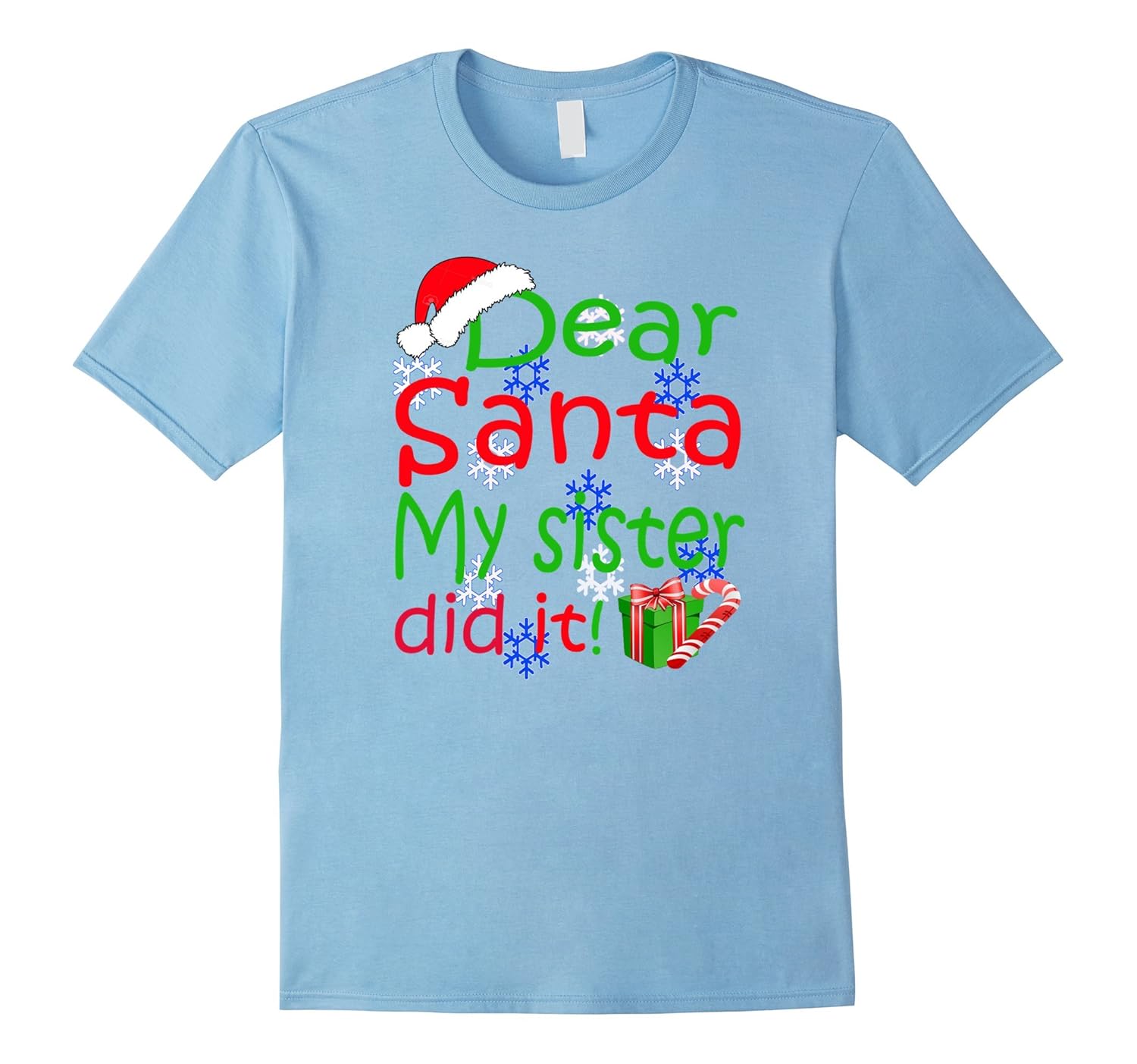 Solid colors: 100% Cotton; Heather Grey: 90% Cotton, 10% Polyester; All Other Heathers: 65% Cotton, 35% Polyester; Imported; Machine wash cold with like colors, dry low heat; Funny Sibling Christmas T-Shirt: Dear Santa, My Sister Did It!; I Love Christmas tshirt, Merry Christmas 2017 Tshirt; Lightweight, Classic fit, Double-needle sleeve and bottom hem