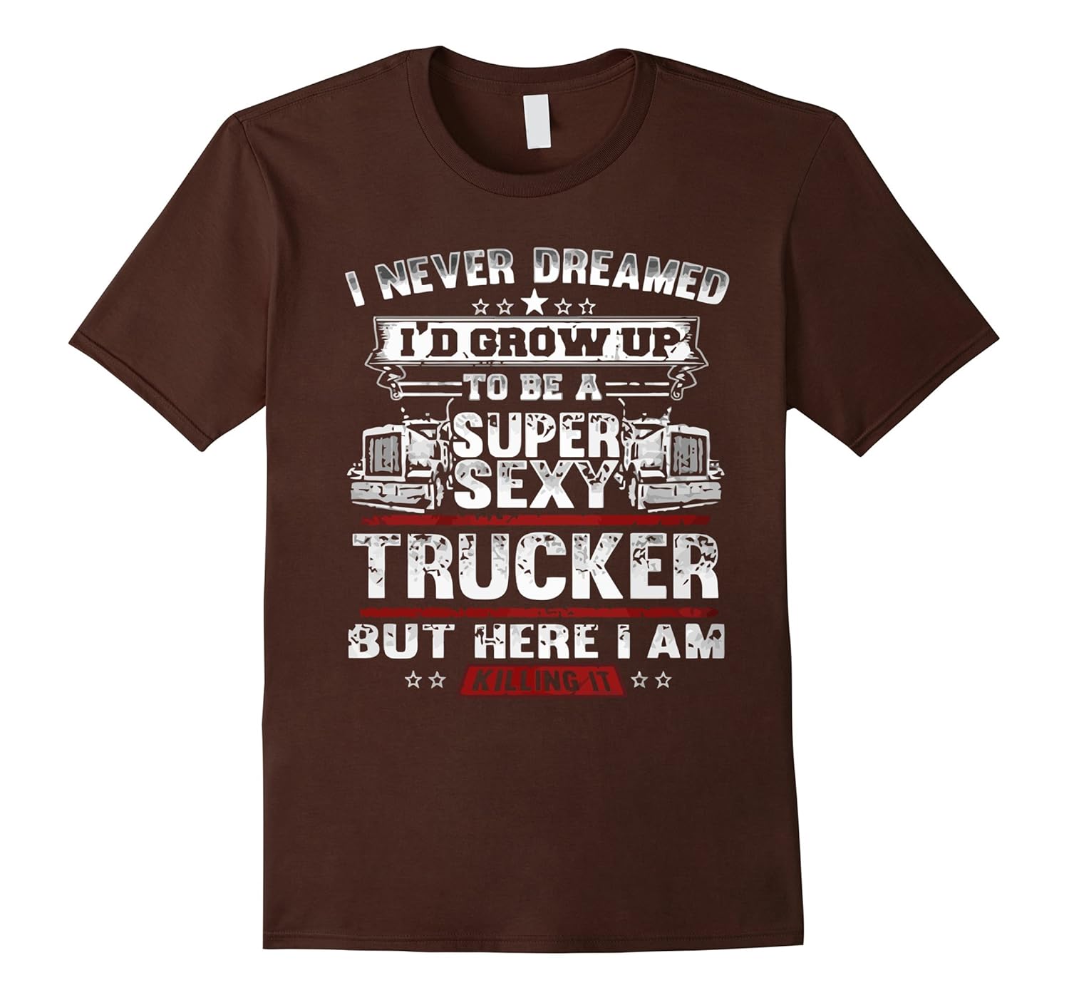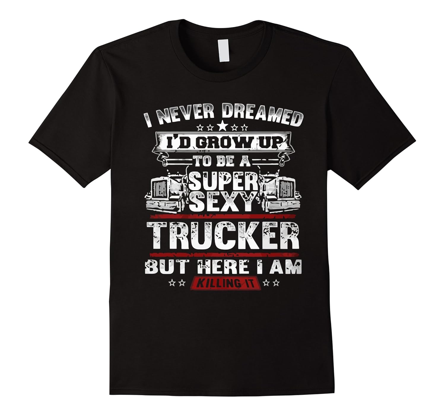 100% Cotton, Imported, Machine wash cold with like colors, dry low heat, Designed For TRUCKER BIG TURBO DOWN ROAD HIWAY LIFE HARDWORKING THERAPY REAL PROUD TOUGH GRIND WORK DIESEL DYNO DAD TShirt, Description: I Never Dreamed I”d Grow up to be a super sexy trucker but i am here and killing it – Great gift for people who you like to wear meme text based funny racing motor bicycle track truck car driving slang image symbol tee t shirt design, Lightweight, Classic fit, Double-needle sleeve and bottom hem