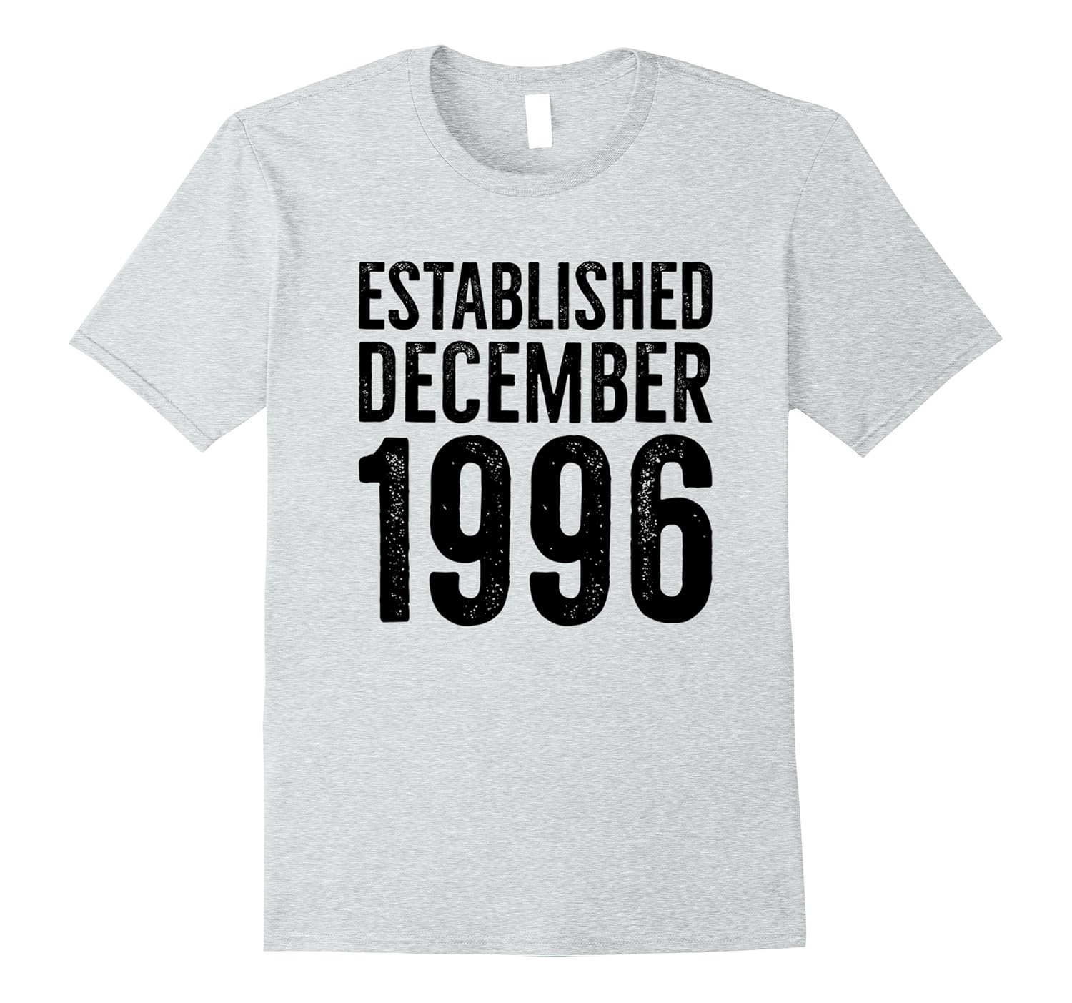 Solid colors: 100% Cotton; Heather Grey: 90% Cotton, 10% Polyester; All Other Heathers: 65% Cotton, 35% Polyester, Imported, Machine wash cold with like colors, dry low heat, Birthday shirt for people born in the month of December in the year 1996. Fun present for a man or woman, King or Queen. Established December 1996 Birthday or Christmas party gift shirt. Classic Retro vintage style distressed design. Lightweight, Classic fit, Double-needle sleeve and bottom hem