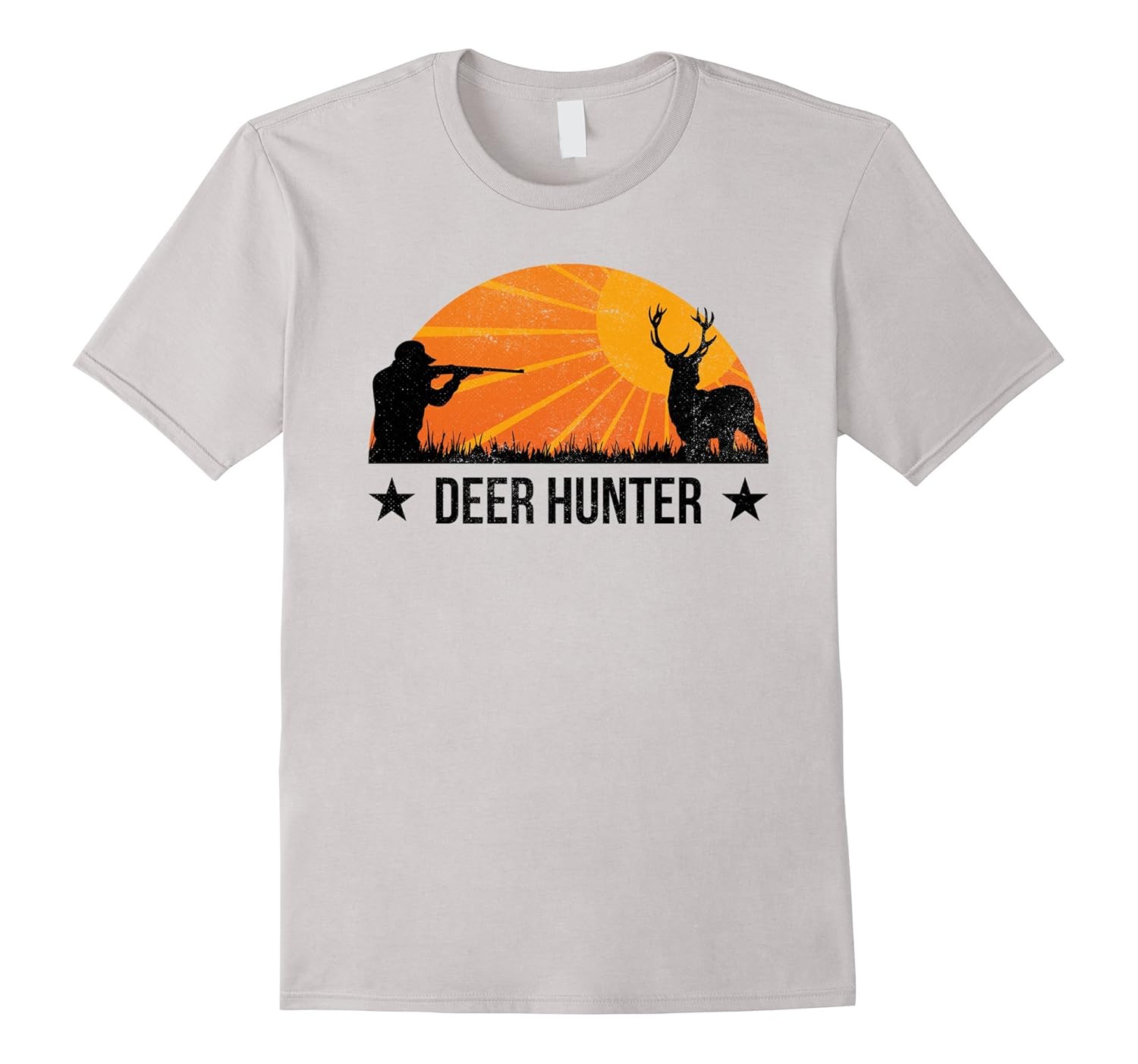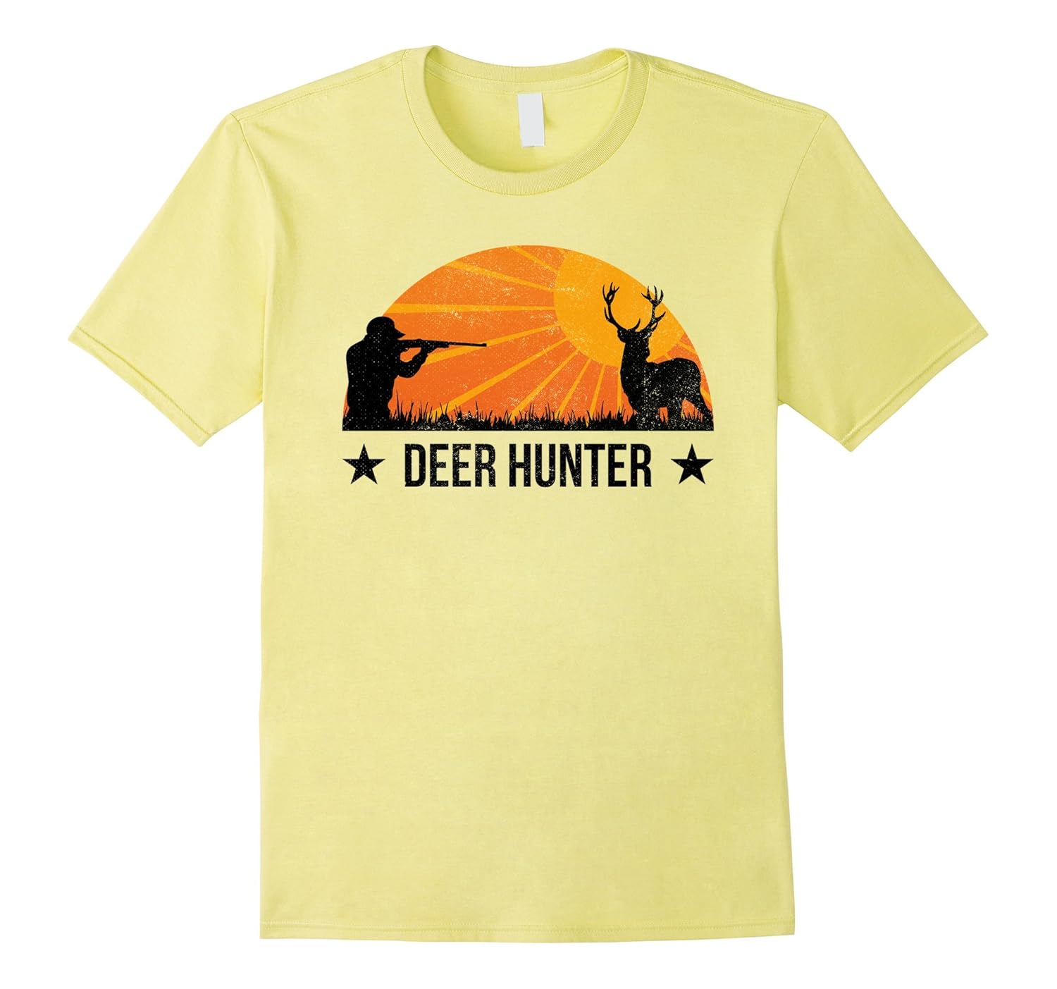 Solid colors: 100% Cotton; Heather Grey: 90% Cotton, 10% Polyester; All Other Heathers: 65% Cotton, 35% Polyester; Imported; Machine wash cold with like colors, dry low heat; If you are a deer hunter who cant wait for deer season to spend days outdoors going on white-tail buck, moose and elk hunting trips with your family and hunting buddies, this tshirt is for you. Stylish distressed sunset art design with cool vintage look.; Whether you do stand or still hunting, deer drives, spot and stalk or dog hunting, it sure is fun! Great t-shirt gift idea for fathers day, anniversary or birthday for hunter husband, grandpa, uncle, brother or huntress mom, wife, aunt or sister.; Lightweight, Classic fit, Double-needle sleeve and bottom hem