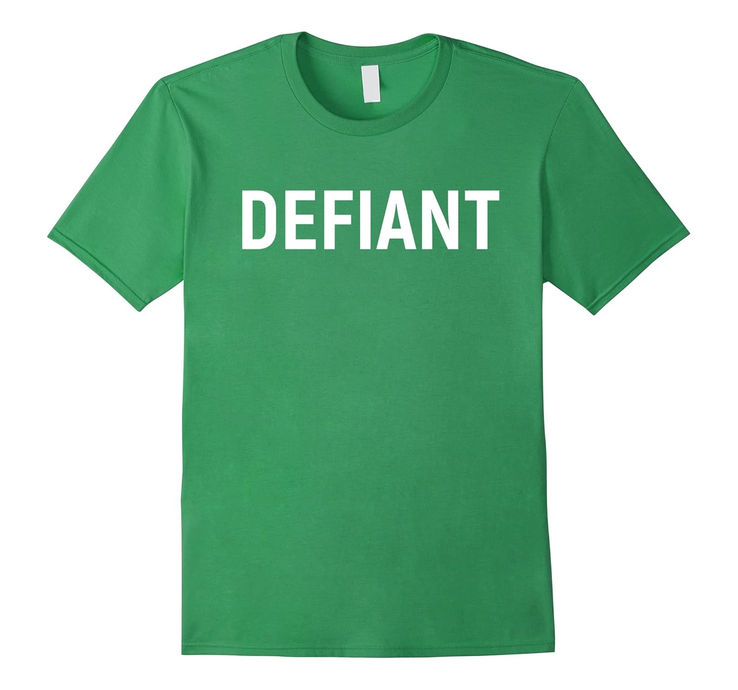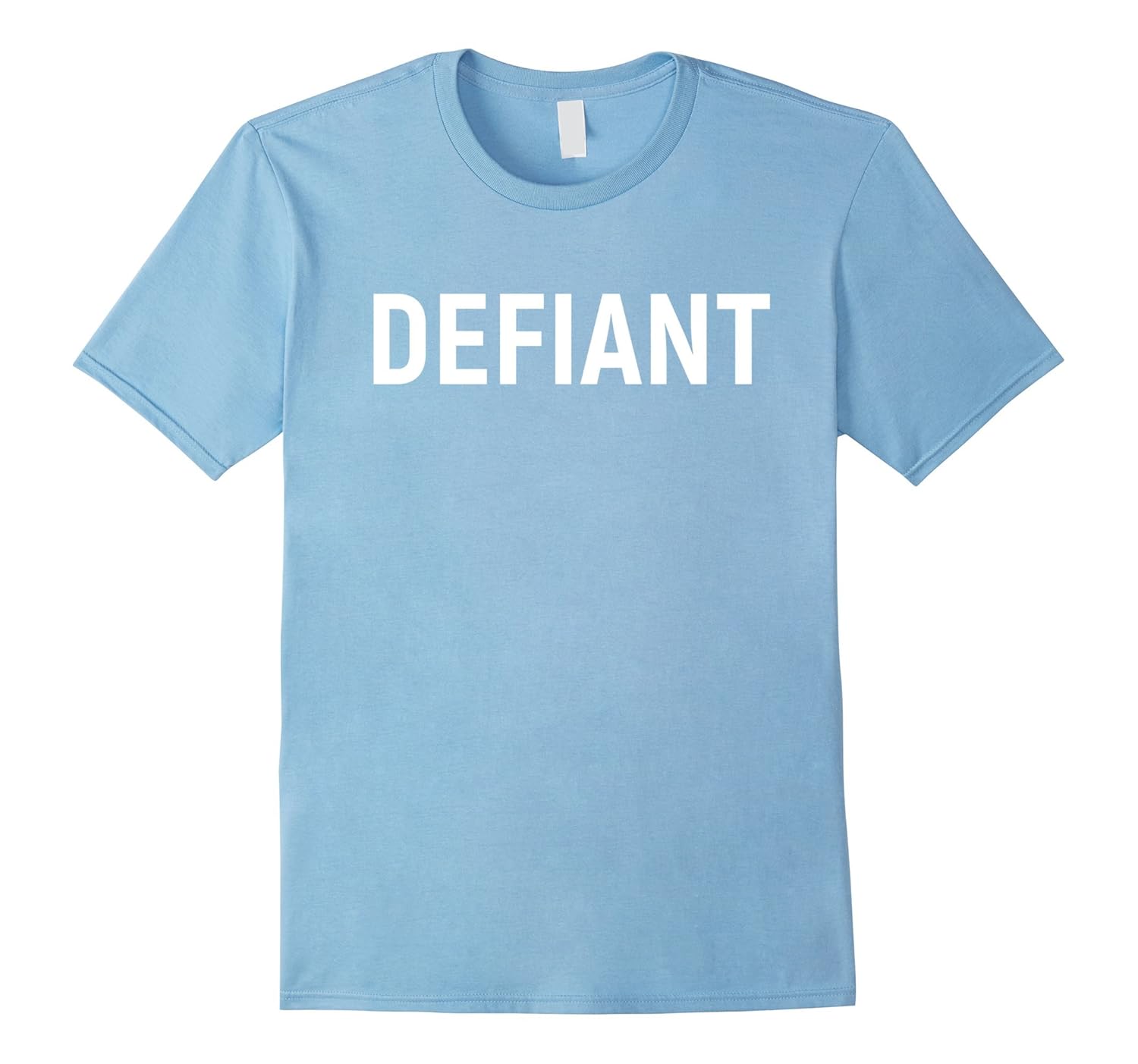 Solid colors: 100% Cotton; Heather Grey: 90% Cotton, 10% Polyester; All Other Heathers: 65% Cotton, 35% Polyester, Imported, Machine wash cold with like colors, dry low heat, Being defiant is not always a bad thing. In fact it”s a great thing when making a stand for our country. Fight racism, discrimination of all types, damage to our environment and more with these Political T Shirts for men, women and kids. Defiant TShirt with bold white writing. These political tshirts are perfect gifts for social activists, Lightweight, Classic fit, Double-needle sleeve and bottom hem