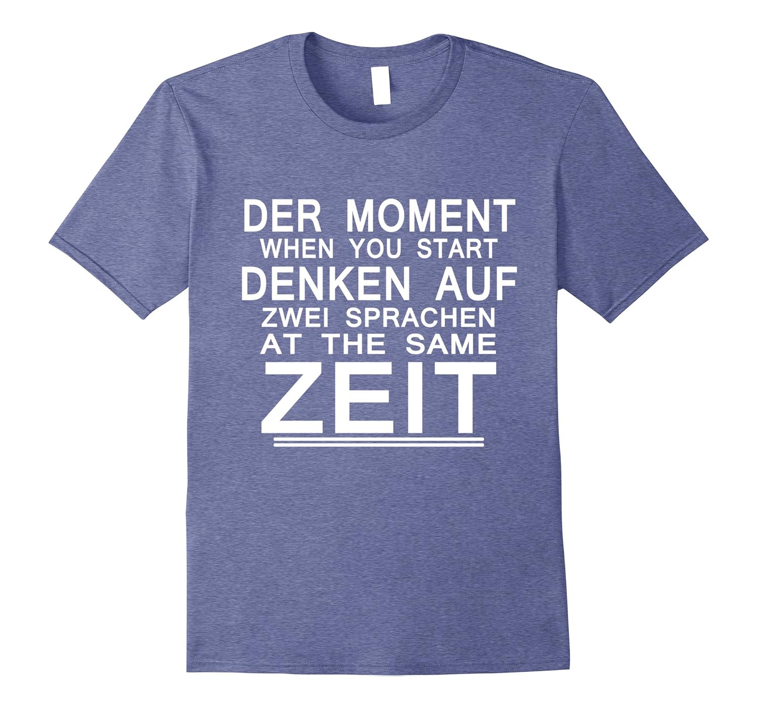 Solid colors: 100% Cotton; Heather Grey: 90% Cotton, 10% Polyester; All Other Heathers: 65% Cotton, 35% Polyester, Imported, Machine wash cold with like colors, dry low heat, Der Moment When You Start Denken Auf Zwei Sprachen At The Same Zeit Funny T-Shirts, Funny humor novelty gift tee shirt for family and friends. T Shirt comes in various colors and sizes. Lightweight, Classic fit, Double-needle sleeve and bottom hem