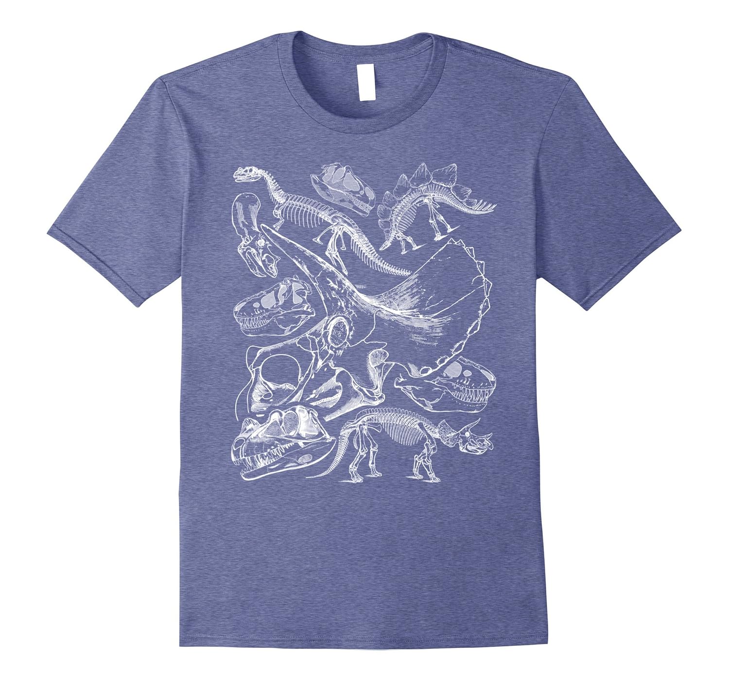 Solid colors: 100% Cotton; Heather Grey: 90% Cotton, 10% Polyester; All Other Heathers: 65% Cotton, 35% Polyester, Imported, Machine wash cold with like colors, dry low heat, Fun dinosaur bones tshirt, great dinosaur birthday tshirt for fossil hunters, future paleontologists and those that just love dinosaurs, Showing illustrations of dinosaur bones including Tyrannosaurus Rex and; Triceratops skulls makes for a great dinosaur tshirt for all ages, Lightweight, Classic fit, Double-needle sleeve and bottom hem