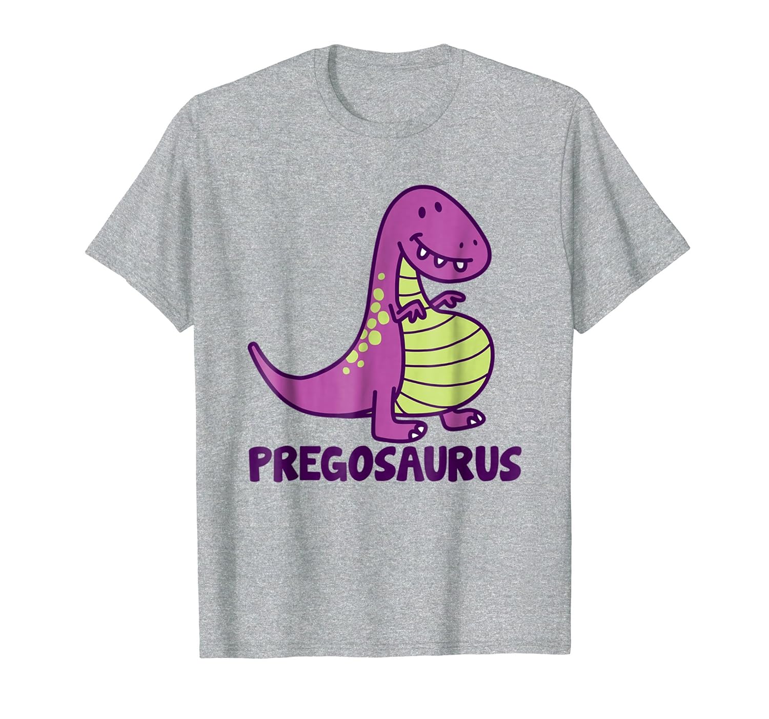 Solid colors: 100% Cotton; Heather Grey: 90% Cotton, 10% Polyester; All Other Heathers: 50% Cotton, 50% Polyester; Imported; Machine wash cold with like colors, dry low heat; The perfect t-shirt for women who are pregnant. This shirt has a cute drawing of a dinosaur with a baby bump and the words pregosaurus. A perfect expecting mothers. Add this shirt to your Christmas and birthday gift ideas.; Wear it proudly anywhere. Makes a great present for expecting mothers who love cute graphic tees. A great shirt of an expecting mommy. Good clean humor. Kids will love the cartoon dino. Sizes available for men and women.; Lightweight, Classic fit, Double-needle sleeve and bottom hem