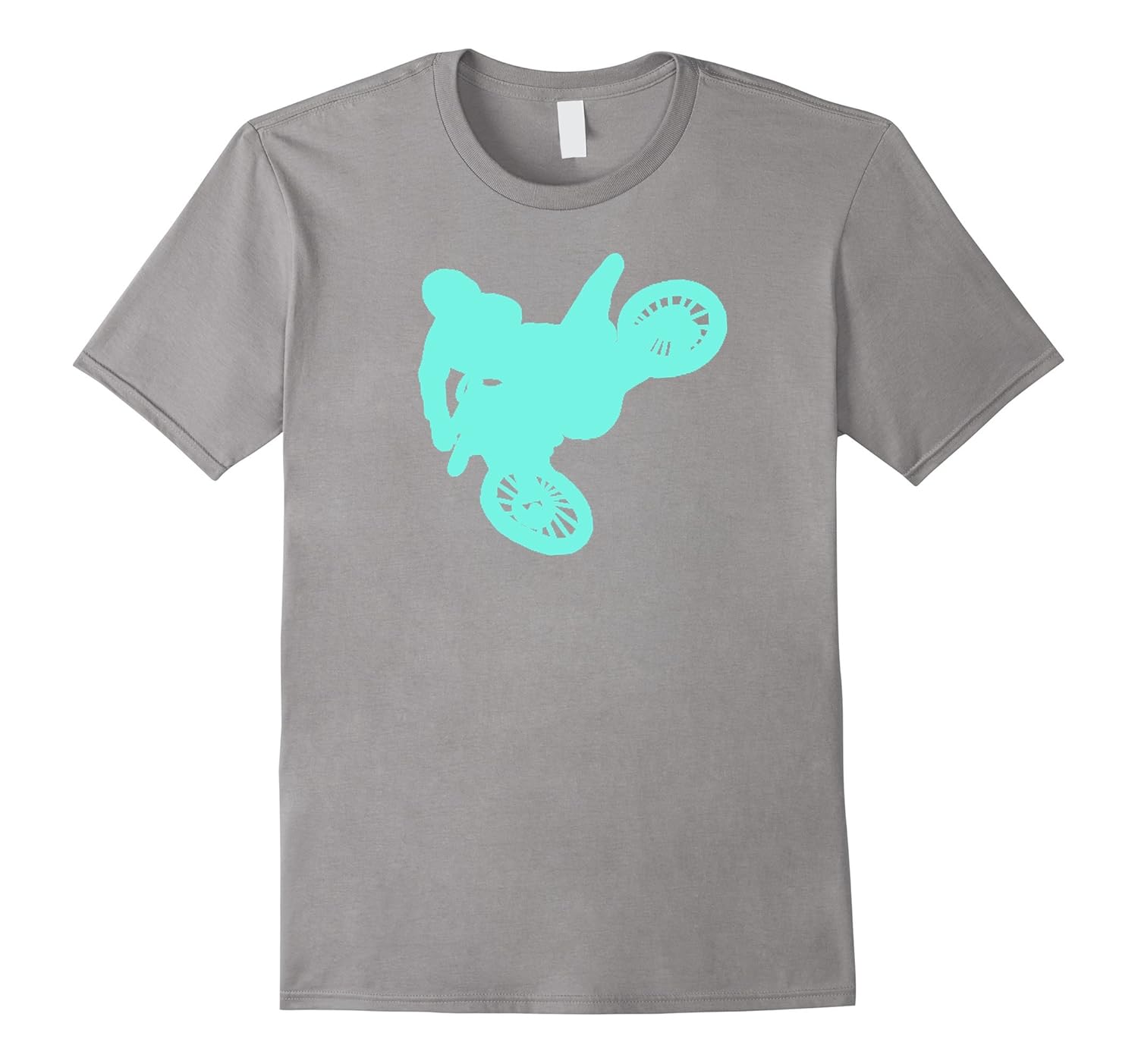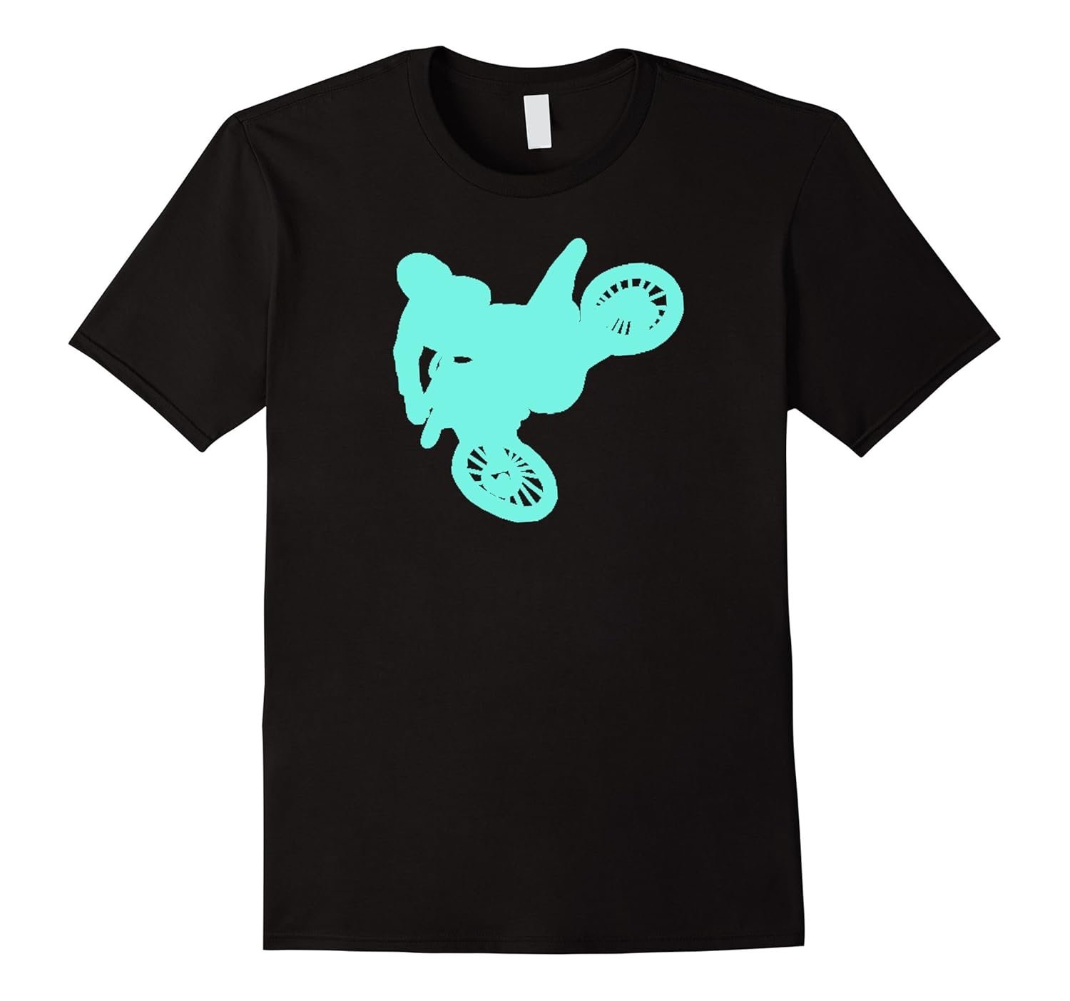 Solid colors: 100% Cotton; Heather Grey: 90% Cotton, 10% Polyester; All Other Heathers: 65% Cotton, 35% Polyester; Imported; Machine wash cold with like colors, dry low heat; Not sold in stores! Hand drawn electric teal motocross rider jumping whip trick. Awesome shirt for dedicated riders of the track, back roads, forest trails and pit riding as a birthday gift, congratulation present, graduation idea, or just because!; For a birthday, thank you gift, on fathers day, a graduation present, retirement idea, valentines day or Christmas stocking stuffer. Only available online. For women, men, boys, girls and teens in a variety of sizes and colors. Dirty fun for family!; Lightweight, Classic fit, Double-needle sleeve and bottom hem