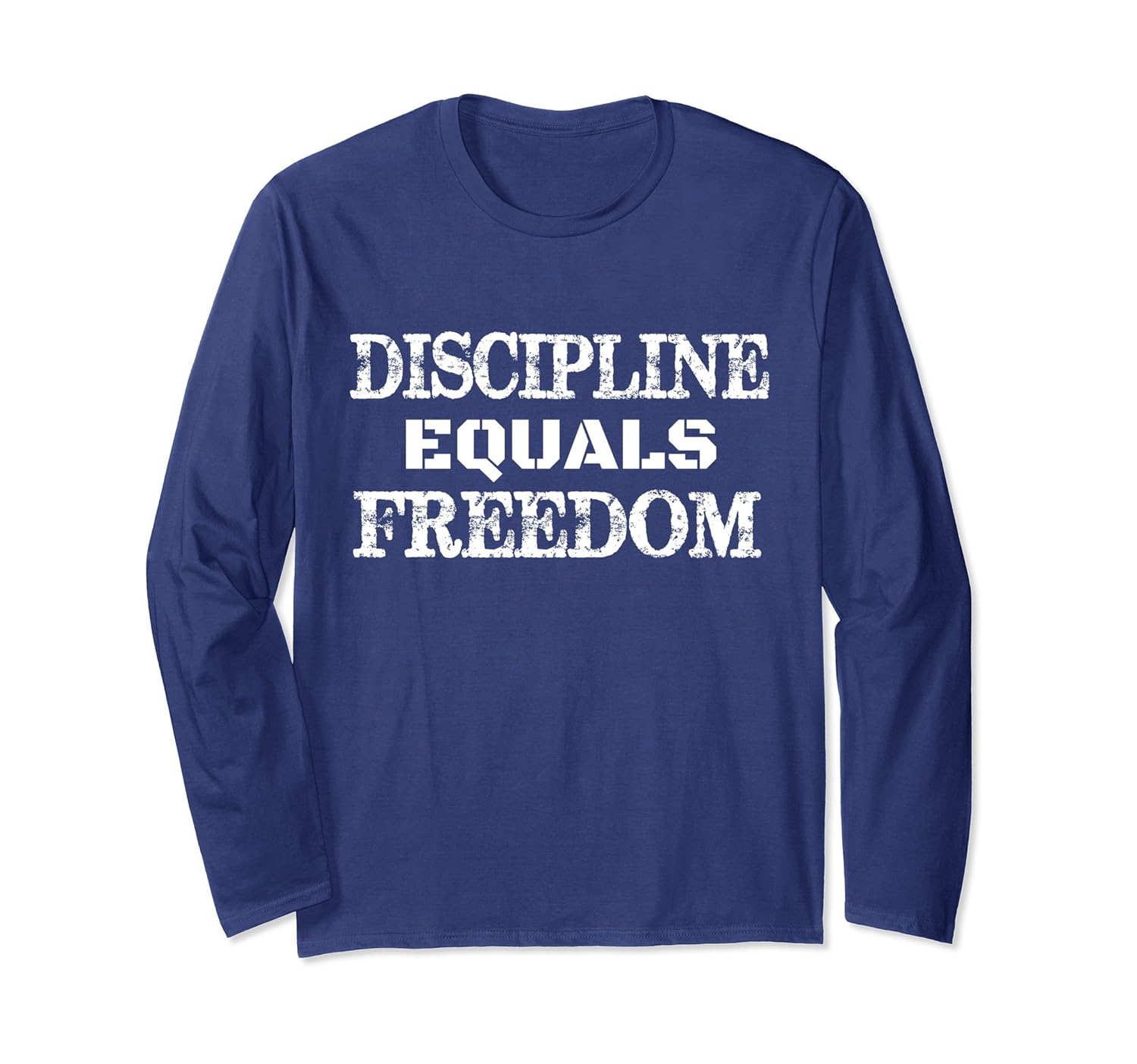 Solid colors: 100% Cotton; Heather Grey: 90% Cotton, 10% Polyester; All Other Heathers: 50% Cotton, 50% Polyester; Imported; Machine wash cold with like colors, dry low heat; Discipline Equals Freedom – Motivational Quote Long Sleeve Shirt Perfect gift for a brother, sister, daughter, father, mother, son or daughter.; Discipline Equals Freedom Long Sleeve Shirt is perfect for fitness junkies, athletes, hard workers, bodybuilders, runners, and fitness trainers!; Lightweight, Classic fit, Double-needle sleeve and bottom hem