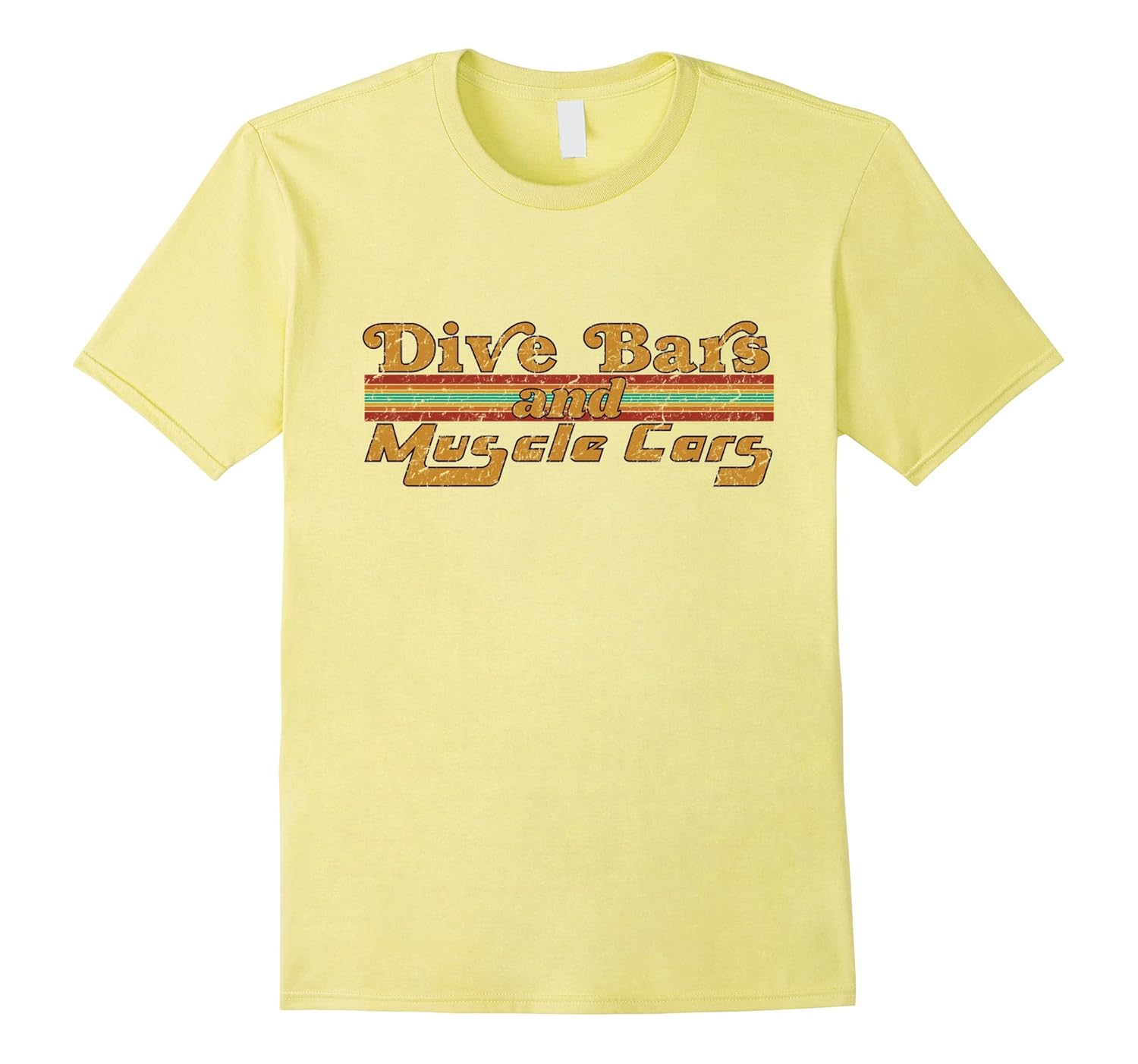 Solid colors: 100% Cotton; Heather Grey: 90% Cotton, 10% Polyester; All Other Heathers: 65% Cotton, 35% Polyester, Imported, Machine wash cold with like colors, dry low heat, Dive Bars and Muscle Cars 70s Shirt, Vintage 70s Style Fonts, Colors, and see through Disressing for a Retro Look. Great for 70s and 80s Parties, Lightweight, Classic fit, Double-needle sleeve and bottom hem