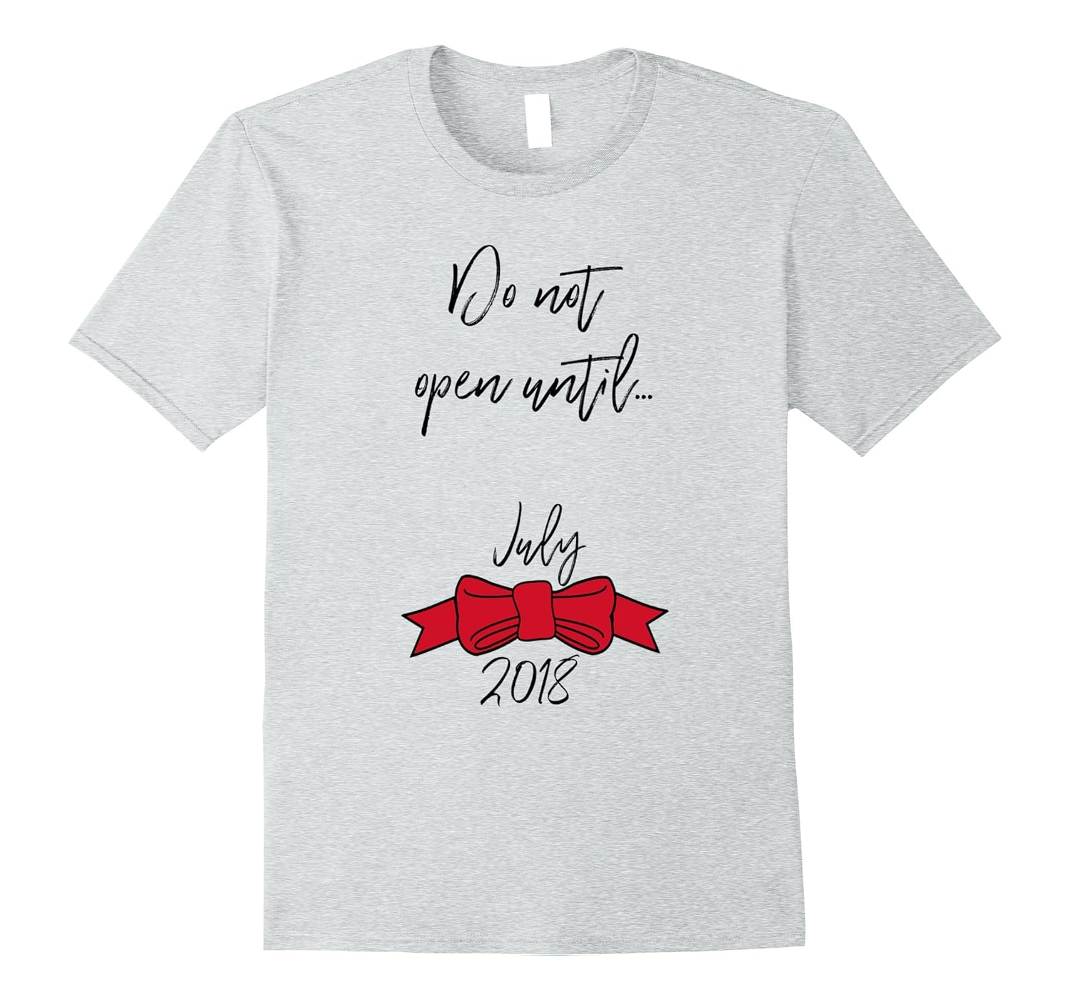 Solid colors: 100% Cotton; Heather Grey: 90% Cotton, 10% Polyester; All Other Heathers: 65% Cotton, 35% Polyester; Imported; Machine wash cold with like colors, dry low heat; This winter, celebrate your Christmas present due to be opened in July 2018, bundle of joy coming soon, preggo bump. Cute pregnancy announcement idea tee. Great tshirt to wear on social media to announce the arrival of your baby gift! Do not unwrap yet!; Wear this t-shirt to show excitement of your new arrival, bun in the oven, with your partner this holiday season! Best gift to open, but not until July! Santa approved!; Lightweight, Classic fit, Double-needle sleeve and bottom hem