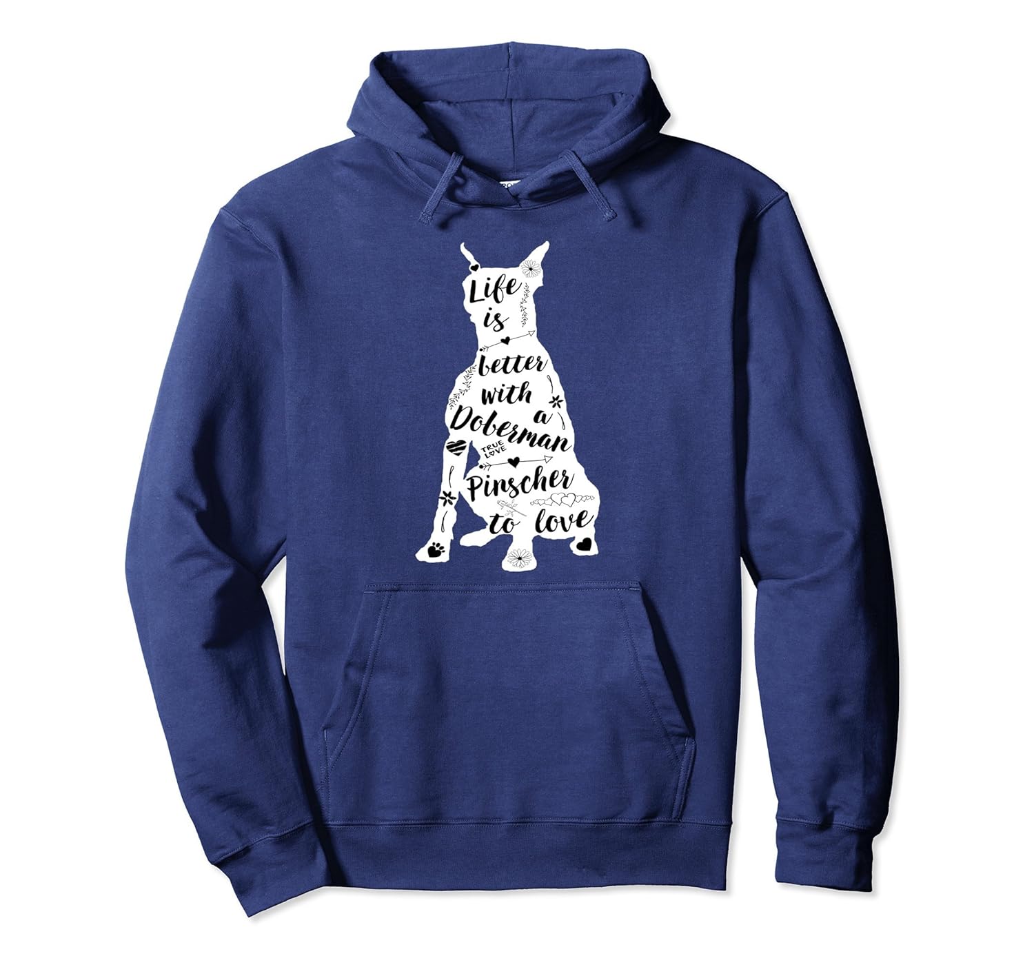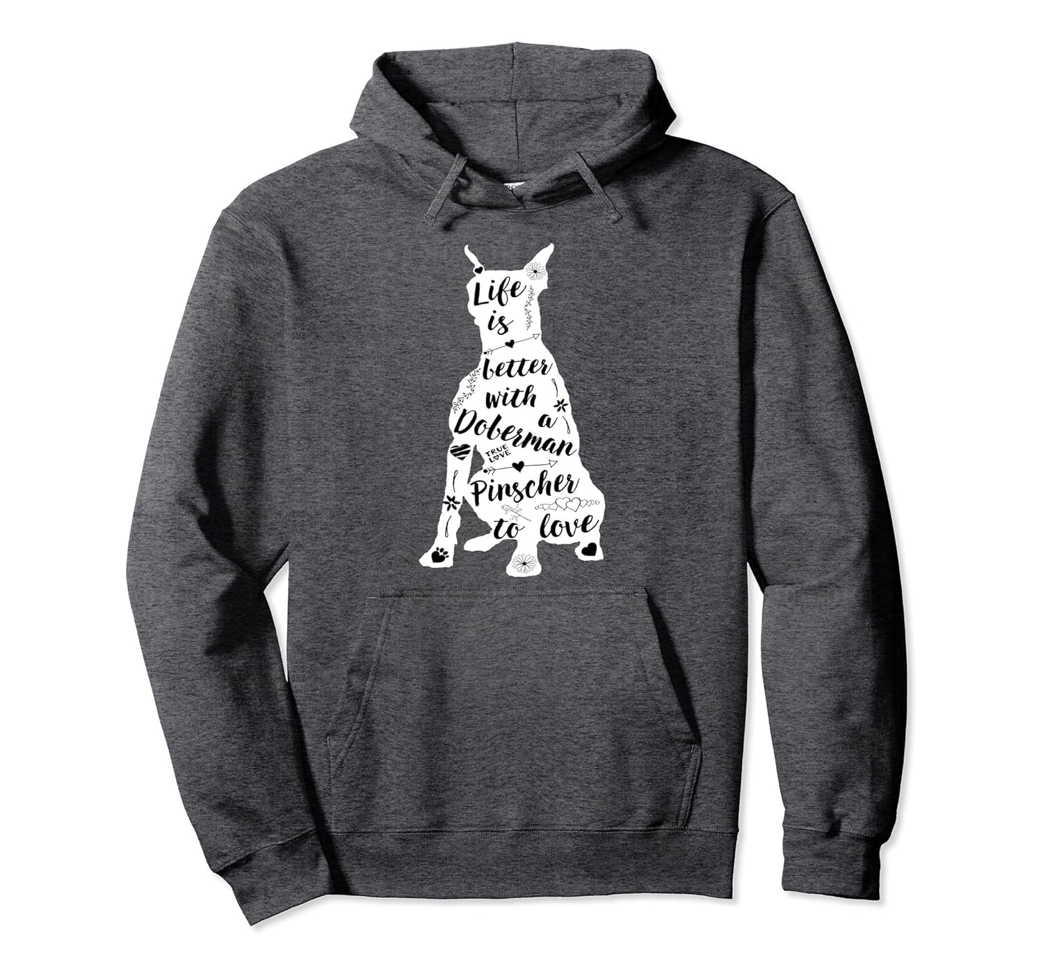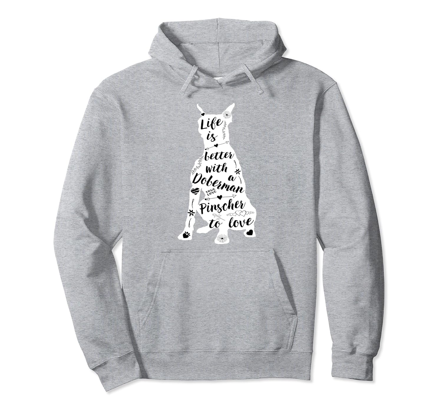 Solid colors: 80% Cotton, 20% Polyester; Heather Grey: 78% Cotton, 22% Poly; Dark Heather: 50% Cotton, 50% Polyester; Imported; Machine wash cold with like colors, dry low heat; Do you know someone who loves a Doberman Pinscher? Could this be you? If so, then you are sure to love your purchase of this creative and attractive shirt called Life Is Better with a Doberman Pinscher Hoodie.; This Doberman Shirt makes a great gift for anyone who loves their Doberman, for someone who raises Doberman Pinschers, or is involved with Doberman Pinscher rescue efforts.; 8.5 oz, Classic fit, Twill-taped neck