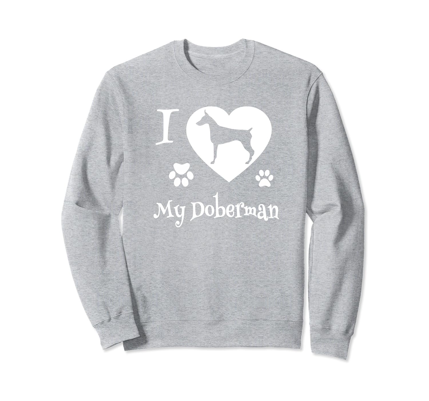 Solid colors: 80% Cotton, 20% Polyester; Heather Grey: 78% Cotton, 22% Poly; Dark Heather: 50% Cotton, 50% Polyester; Imported; Machine wash cold with like colors, dry low heat; Do you know someone who loves a Doberman? Could this be you? If so, then you are sure to love your purchase of this unique and great looking shirt design called I Love My Doberman Sweatshirt.; This Doberman shirt makes a great gift for anyone who owns a Doberman, someone who raises Doberman Pinschers, or is involved with rescuing Dobermans and other dog breeds.; 8.5 oz, Classic fit, Twill-taped neck