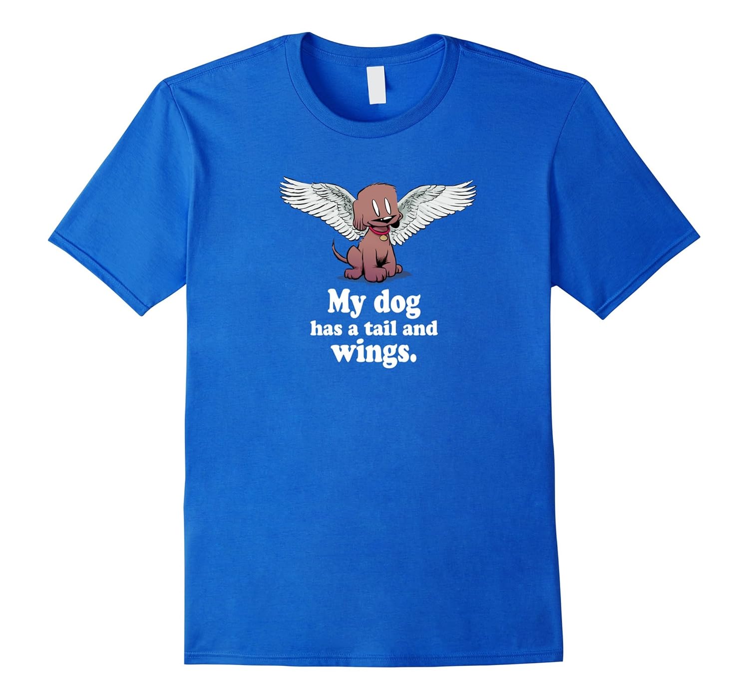 Solid colors: 100% Cotton; Heather Grey: 90% Cotton, 10% Polyester; All Other Heathers: 65% Cotton, 35% Polyester; Imported; Machine wash cold with like colors, dry low heat; A shirt for dog lovers who know their favorite canine is also their gaurdian angel.; Makes a great gift for any dog mom dog dad or pet animal lover!; Lightweight, Classic fit, Double-needle sleeve and bottom hem