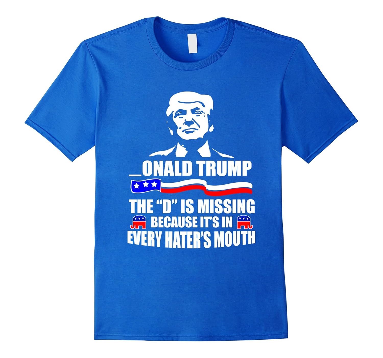 100% Cotton, Imported, Machine wash cold with like colors, dry low heat, Donald Trump – The D is missing because it”s in every hater”s mouth T-shirt, president trump, love trump, support trump, trump fan, Donald Trump – The D is missing it”s in every hater”s mouth shirt, Lightweight, Classic fit, Double-needle sleeve and bottom hem