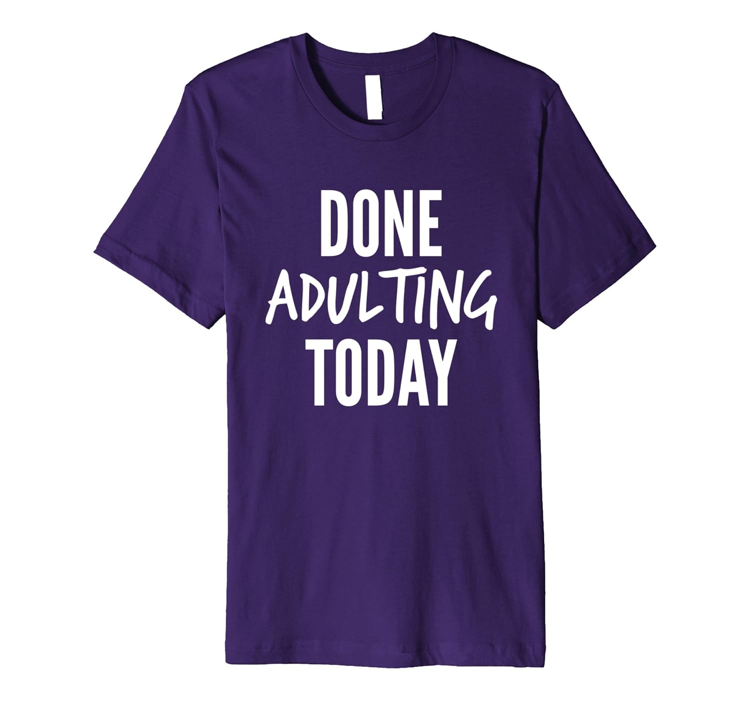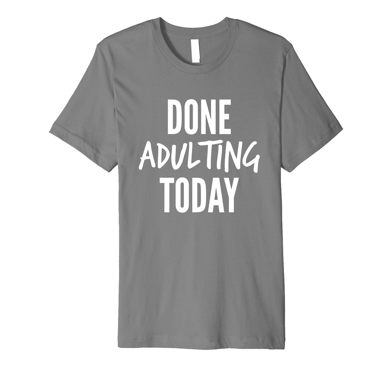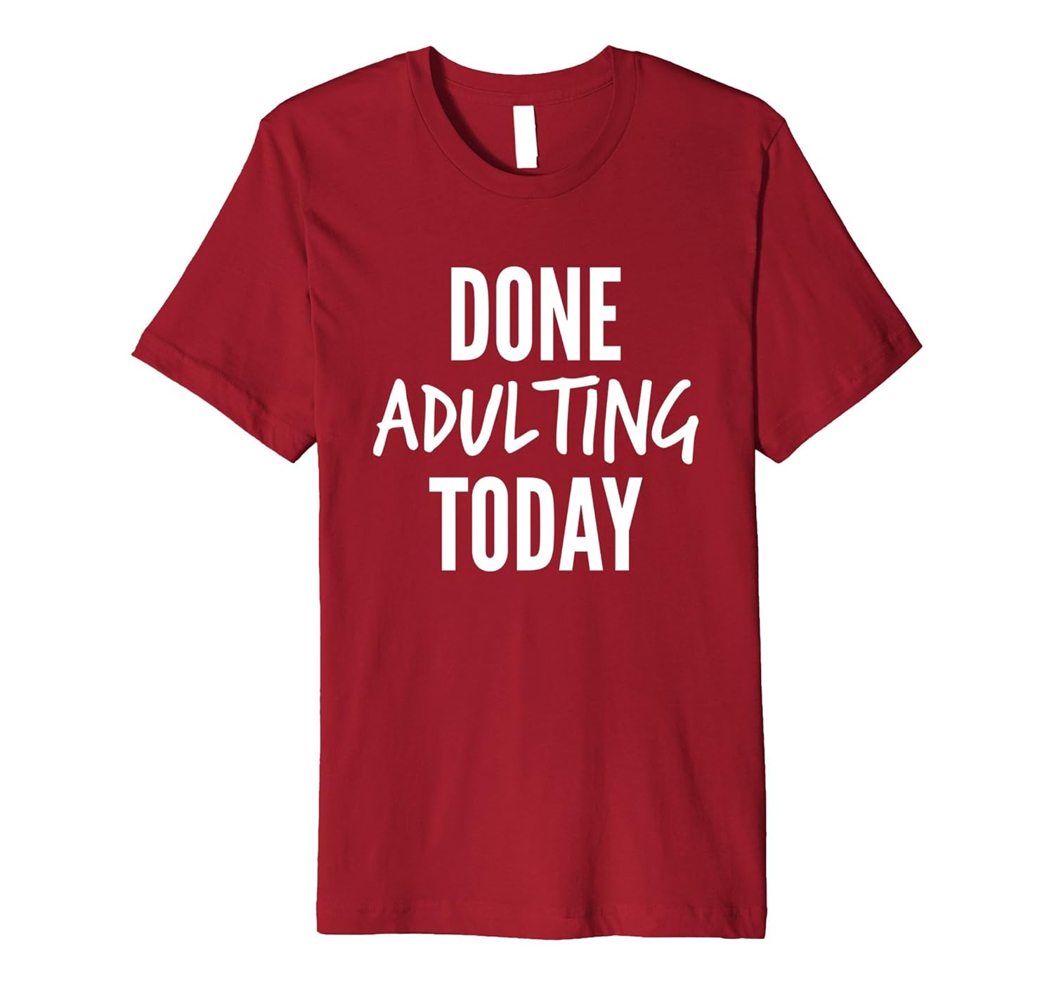 Solid colors: 100% Cotton; Heather Grey: 90% Cotton, 10% Polyester; All Other Heathers: 58% Cotton, 42% Polyester; Imported; Machine wash cold with like colors, dry low heat; This Done Adulting Today Shirt is a great way to express your feelings about the day, and life in general. Great for Adults who are done dealing with life. Sarcasm is a great and funny way to deal with having to be an Adult. Hilarious way to say Im over it; Fit: Slim (consider ordering a larger size for a looser fit); This hilarious Done Adulting Today shirt is also a great gift for Christmas, Birthdays, and any day in between! A funny present for family, friends, coworkers, and anyone you know would enjoy and love this t-shirt. For a looser fit please order a size up.; This premium t-shirt is made of lightweight fine jersey fabric