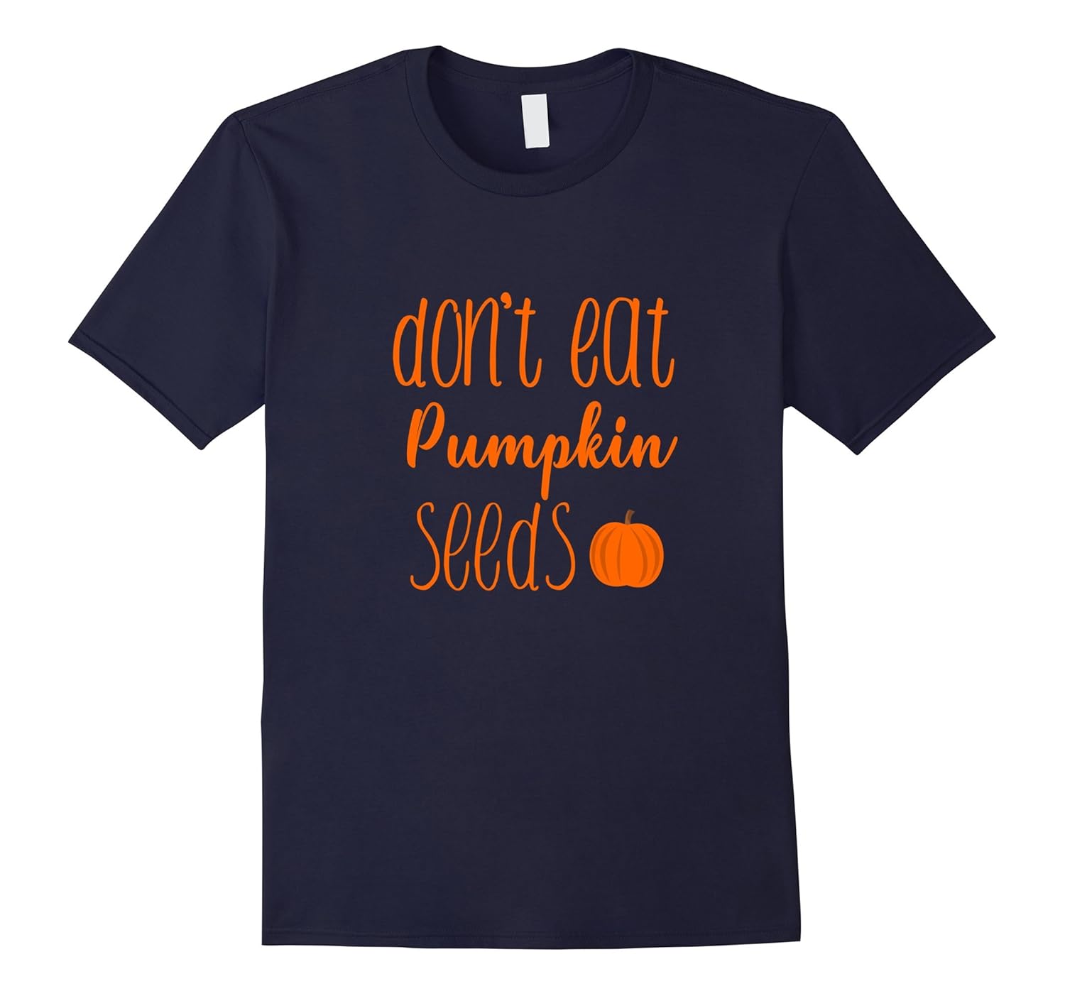 Solid colors: 100% Cotton; Heather Grey: 90% Cotton, 10% Polyester; All Other Heathers: 50% Cotton, 50% Polyester; Imported; Machine wash cold with like colors, dry low heat; This makes a funny Halloween Pumpkin Maternity Shirt.; Dont Eat Pumpkin Seeds is a funny halloween pregnancy shirt for expecting moms. This is a good halloween pregnancy announcement shirt to have.; Lightweight, Classic fit, Double-needle sleeve and bottom hem