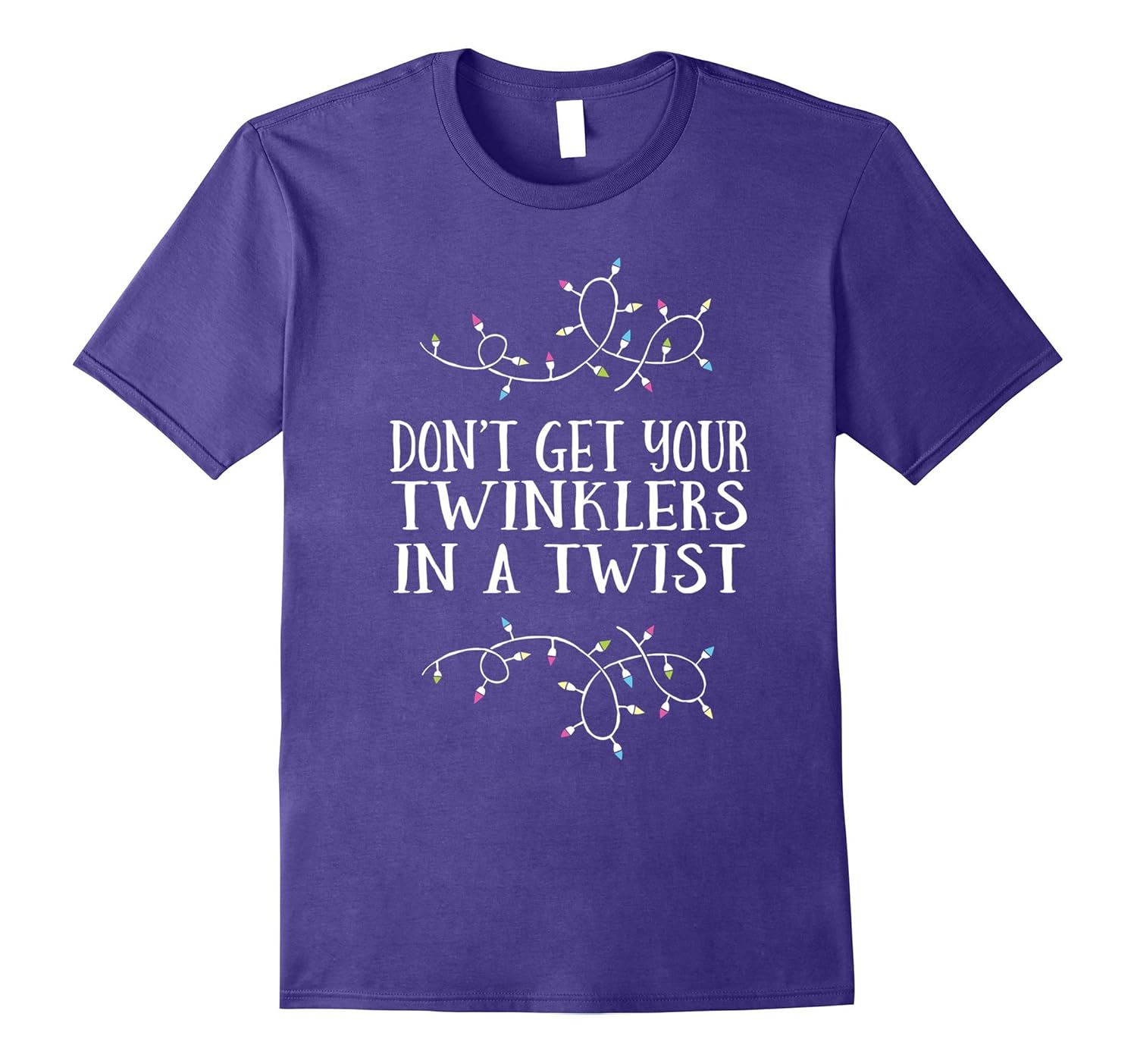 Solid colors: 100% Cotton; Heather Grey: 90% Cotton, 10% Polyester; All Other Heathers: 65% Cotton, 35% Polyester, Imported, Machine wash cold with like colors, dry low heat, This funny Don”t Get Your Twinklers in a Twist t-shirt is perfect for anyone who loves to go a little bit overboard with the holiday decorating. Tee shirt features an illustration of some colorful Christmas lights. This festive tshirt makes the perfect Christmas gift for your favorite holiday decorating fanatic. If they put up so many lights their house looks like its on fire, they”ll love this tshirt. Mens, womens and kids sizes are available. Lightweight, Classic fit, Double-needle sleeve and bottom hem
