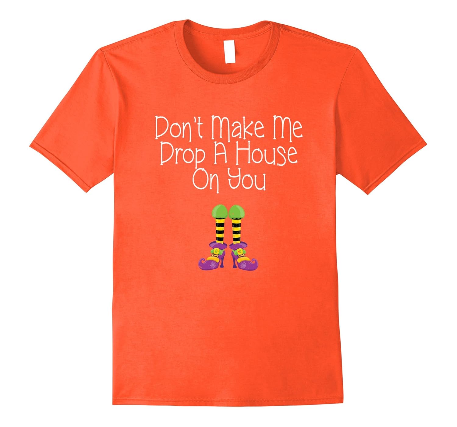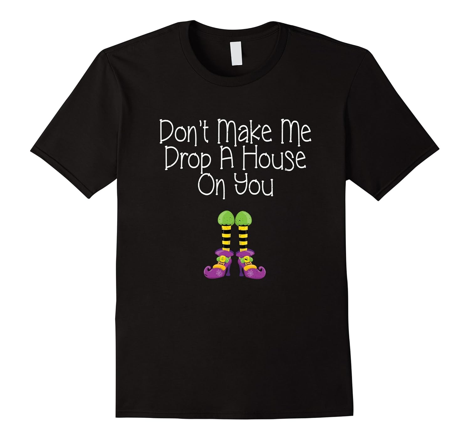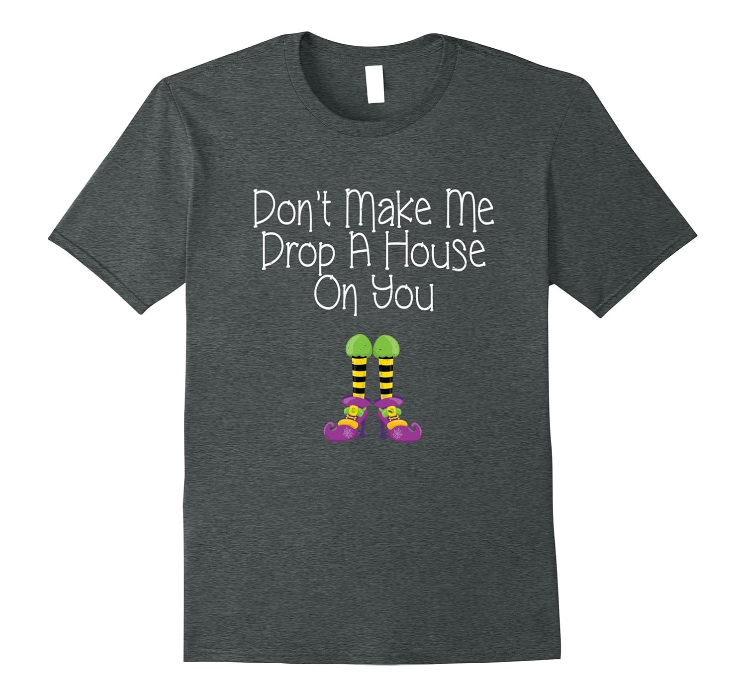 Solid colors: 100% Cotton; Heather Grey: 90% Cotton, 10% Polyester; All Other Heathers: 65% Cotton, 35% Polyester, Imported, Machine wash cold with like colors, dry low heat, Don”t Make Me Drop A House On You T Shirt, Funny Halloween Shirt with Witch Legs, Lightweight, Classic fit, Double-needle sleeve and bottom hem