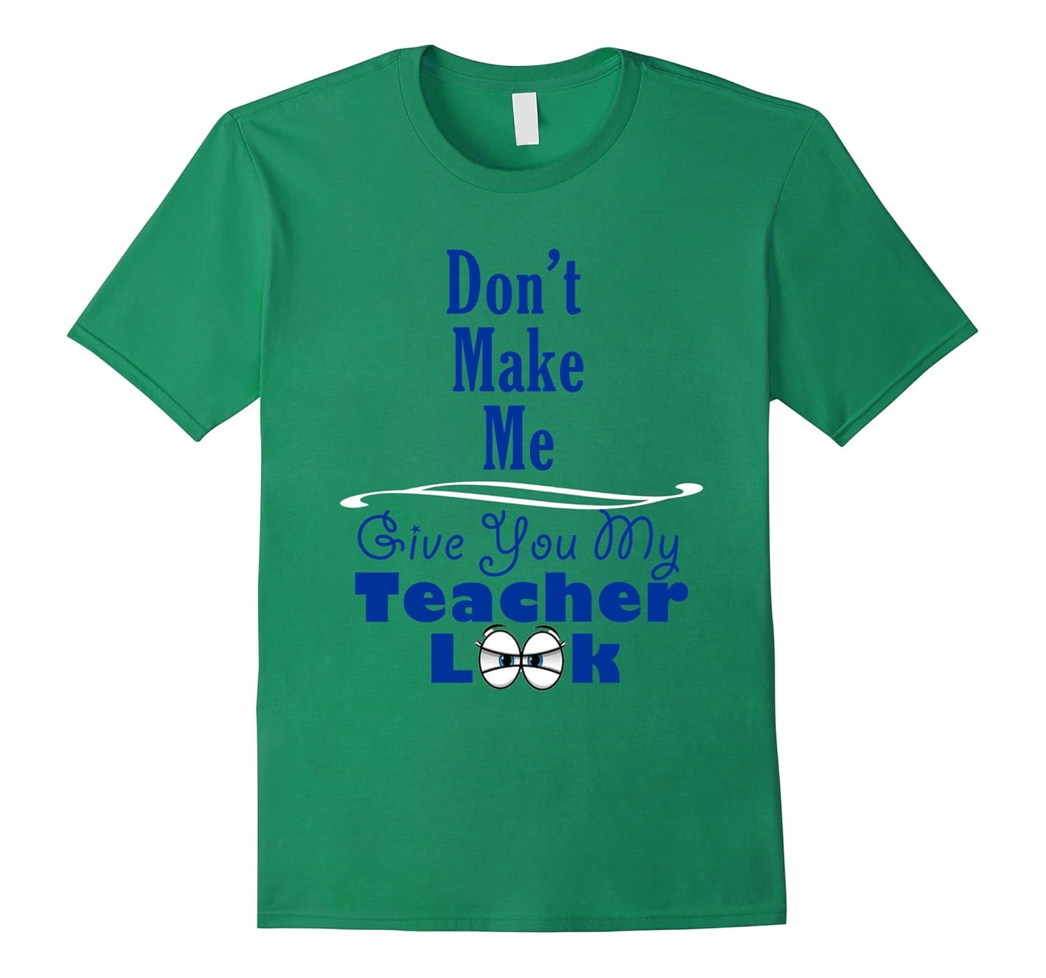 100% Cotton; Imported; Machine wash cold with like colors, dry low heat; Dont Make Me Give You My Teacher Look humorous saying in blue text with crossed eyes graphic is printed on a high quality short sleeve regular fit unisex tee shirt. Plus sized ladies can order mens sizes for a comfortable fit.; Original, official custom graphic and text tee shirt design for teachers by ETS Press. Cool teachers gift for Back to School, Christmas, Valentines, and Teacher Appreciation Week. Perfect for men and women professional educators to wear to school, workshops, and teaching conferences.; Lightweight, Classic fit, Double-needle sleeve and bottom hem