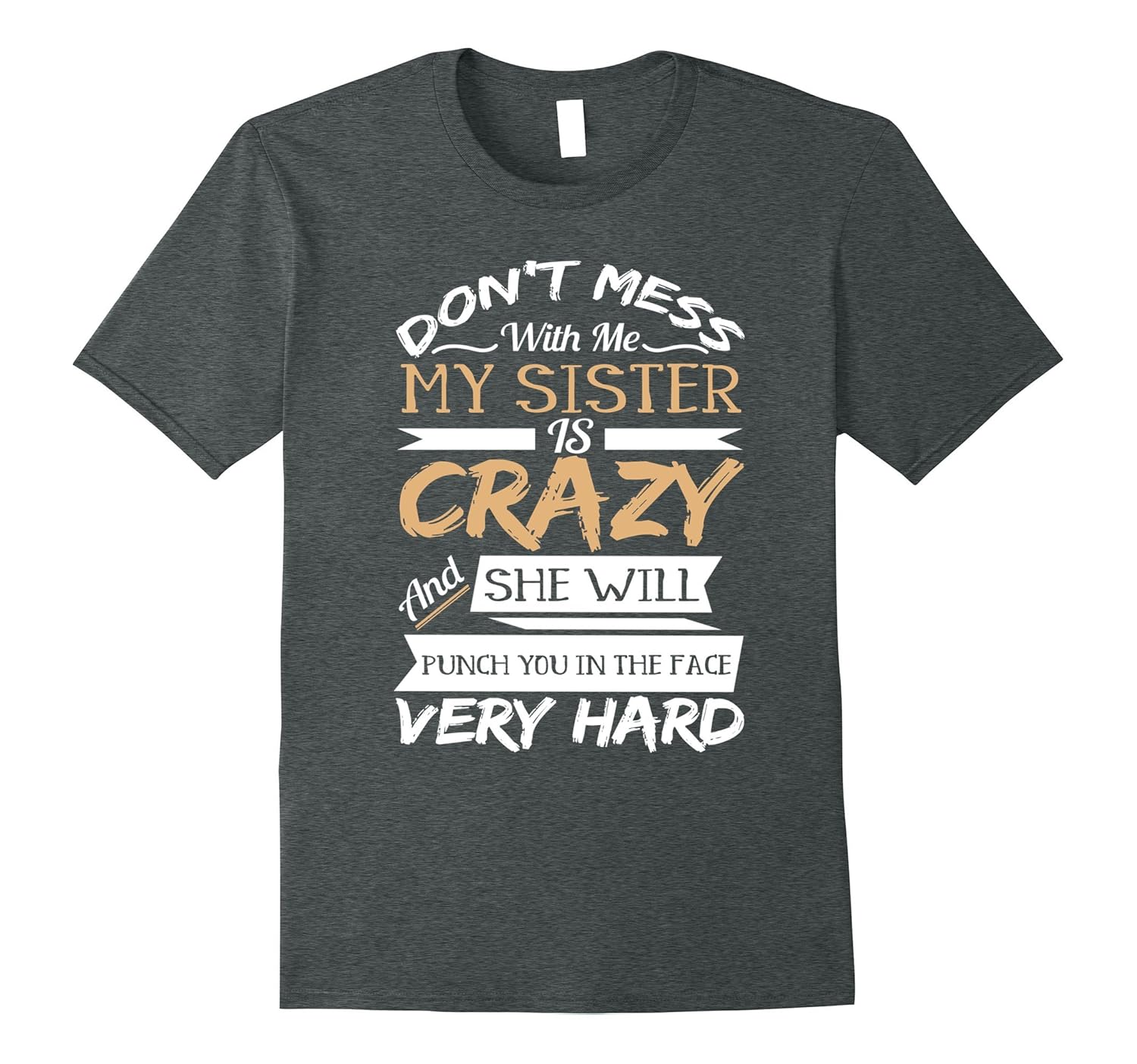 Solid colors: 100% Cotton; Heather Grey: 90% Cotton, 10% Polyester; All Other Heathers: 65% Cotton, 35% Polyester, Imported, Machine wash cold with like colors, dry low heat, Don”t Mess With Me My Sister Is Crazy And She Will Punch You In The Face Very Hard Shirt, Best gift Ideas for your sisters, Lightweight, Classic fit, Double-needle sleeve and bottom hem