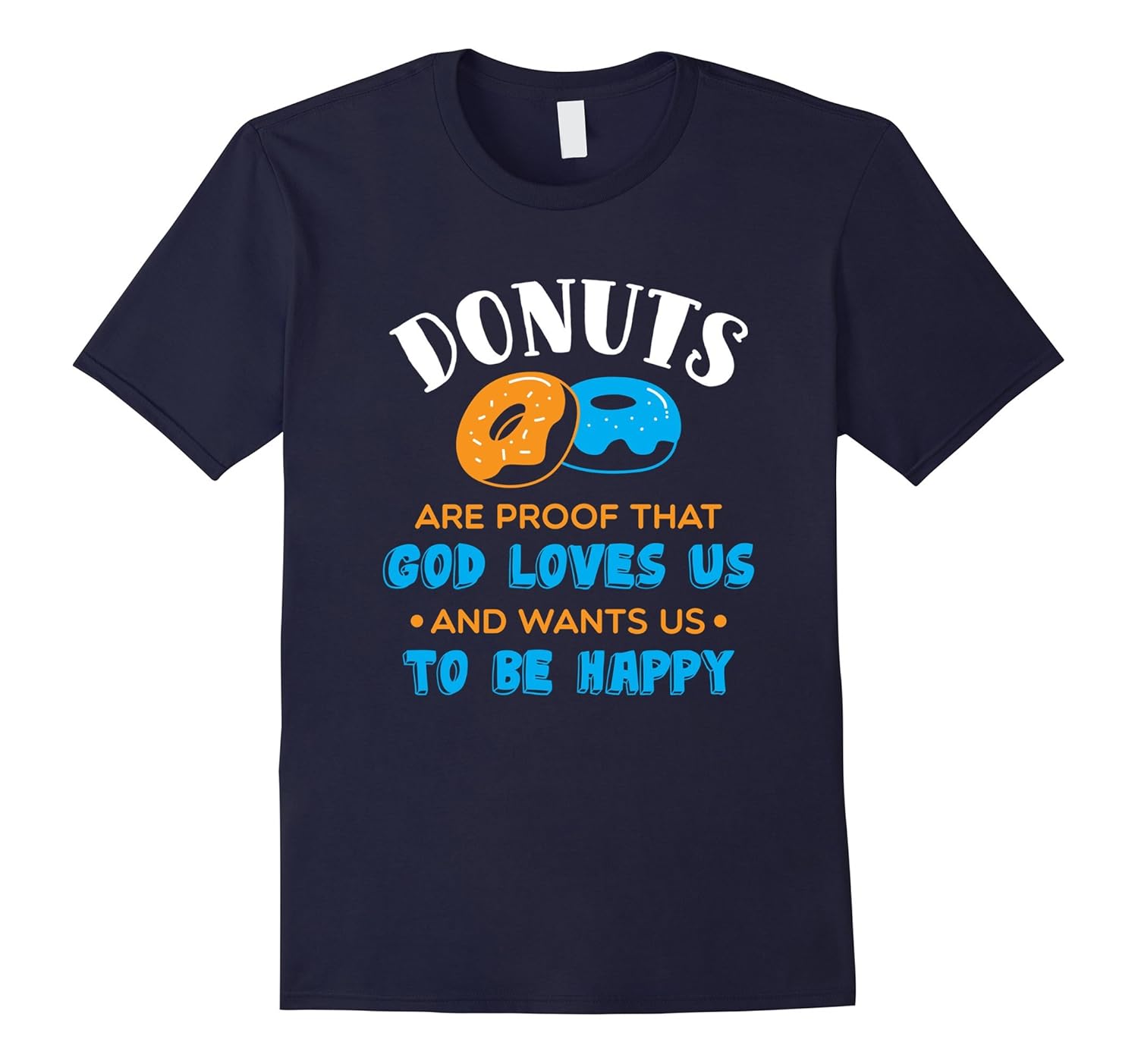 Solid colors: 100% Cotton; Heather Grey: 90% Cotton, 10% Polyester; All Other Heathers: 65% Cotton, 35% Polyester, Imported, Machine wash cold with like colors, dry low heat, Donuts are proof that God loves us and wants us to be happy. This funny tee shirt is perfect for any doughnut lover or donut shop owner, This donut novelty tshirt would make a great birthday present or holiday gift for men, women, or kids who love donuts, Lightweight, Classic fit, Double-needle sleeve and bottom hem