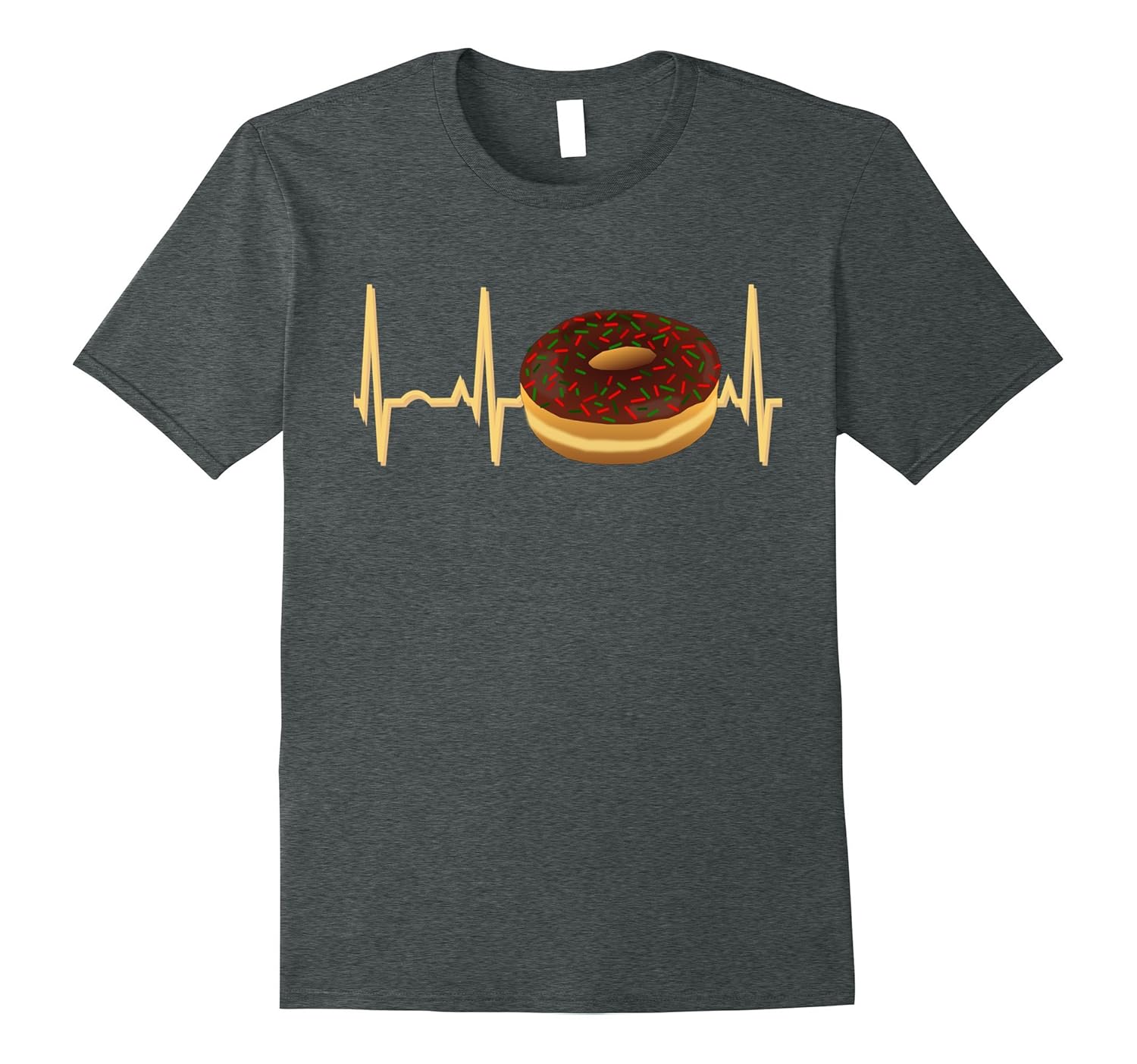 Solid colors: 100% Cotton; Heather Grey: 90% Cotton, 10% Polyester; All Other Heathers: 65% Cotton, 35% Polyester, Imported, Machine wash cold with like colors, dry low heat, Perfect shirt for the donut lover. This special Christmas Donut Shirt features a great image of a seasonal chocolate frosted donut with Christmas sprinkles dropped in the middle of an EKG Heartbeat Pulse Reading. Official “Donut Heartbeat Shirts and; I Love Donut T-Shirts” Brand Shirt. This special Christmas Holiday donut design tee is sure to be a hit this Xmas Season!, Lightweight, Classic fit, Double-needle sleeve and bottom hem
