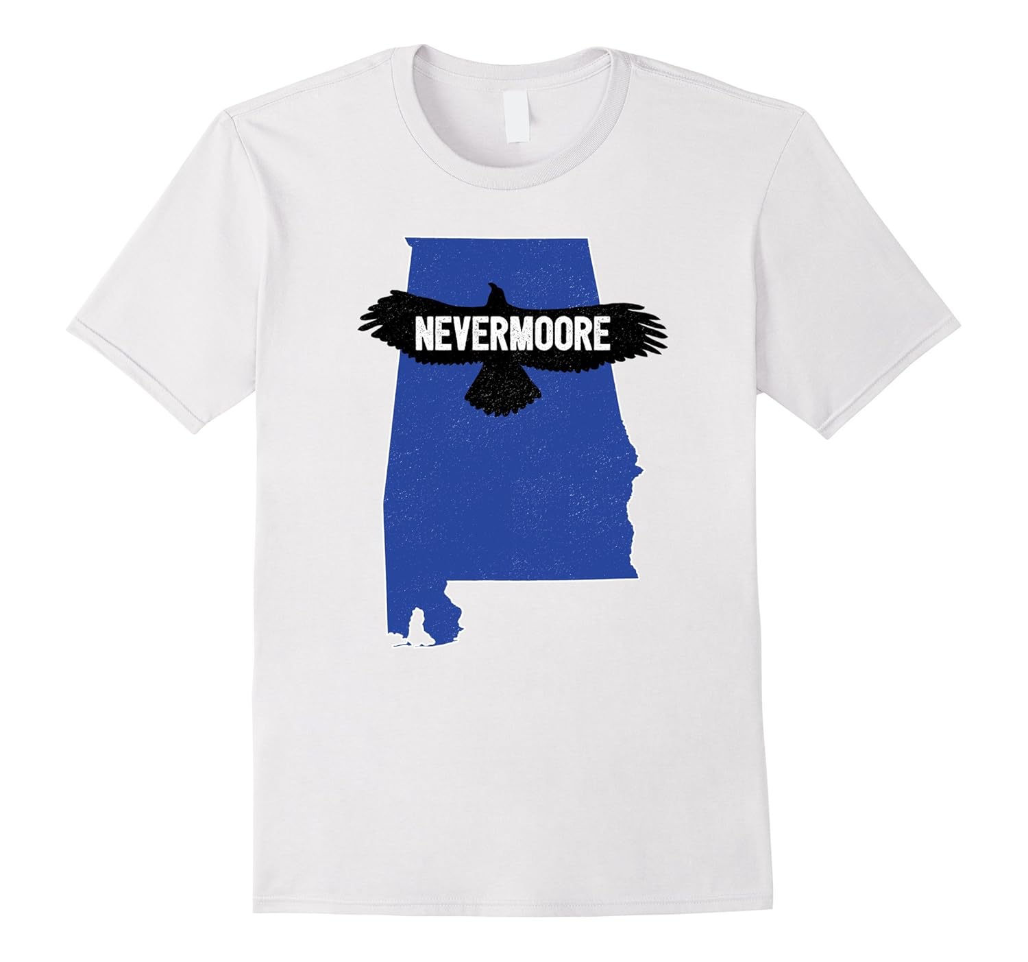 Solid colors: 100% Cotton; Heather Grey: 90% Cotton, 10% Polyester; All Other Heathers: 65% Cotton, 35% Polyester, Imported, Machine wash cold with like colors, dry low heat, Nevermoore! Show your support for Doug Jones with this cool nevermoore tee! Together, we can flip Alabama!, Lightweight, Classic fit, Double-needle sleeve and bottom hem