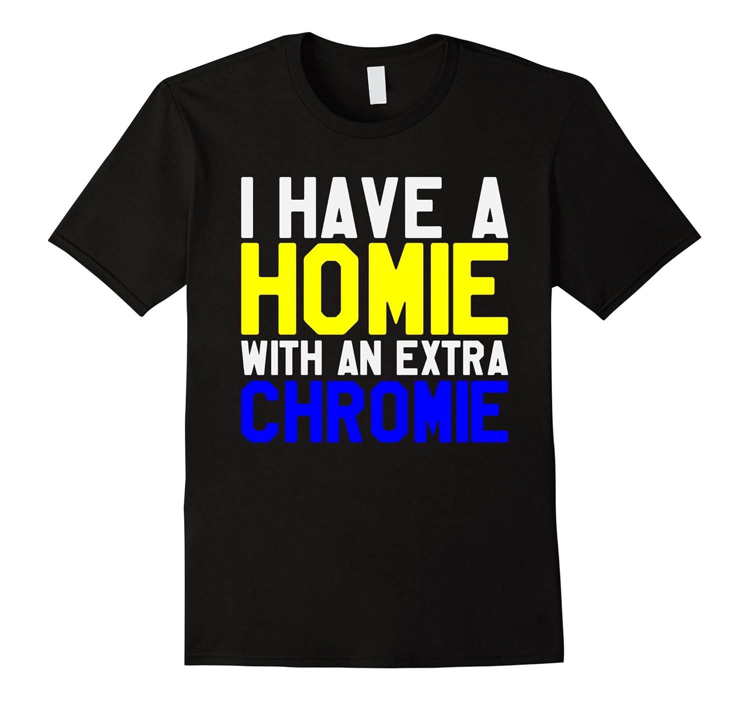 Solid colors: 100% Cotton; Heather Grey: 90% Cotton, 10% Polyester; All Other Heathers: 65% Cotton, 35% Polyester, Imported, Machine wash cold with like colors, dry low heat, Down syndrome cancer awareness shirt, I have a homie with an extra chromie. Makes a funny shirt for the down syndrome cancer warriors on occasions like birthday, christmas, halloween, thanksgiving day, down syndrome cancer awareness month or campaign. Wear this shirt to spread the awareness for down syndrome cancer. Perfect gift idea for the down syndrome cancer warriors. Lightweight, Classic fit, Double-needle sleeve and bottom hem