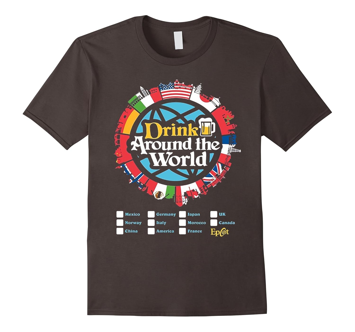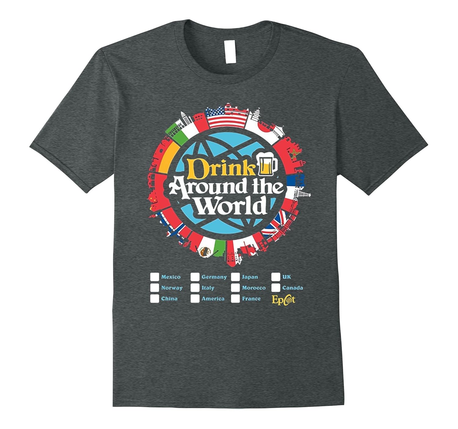Solid colors: 100% Cotton; Heather Grey: 90% Cotton, 10% Polyester; All Other Heathers: 65% Cotton, 35% Polyester, Imported, Machine wash cold with like colors, dry low heat, Drink around the World T Shirt, Lightweight, Classic fit, Double-needle sleeve and bottom hem