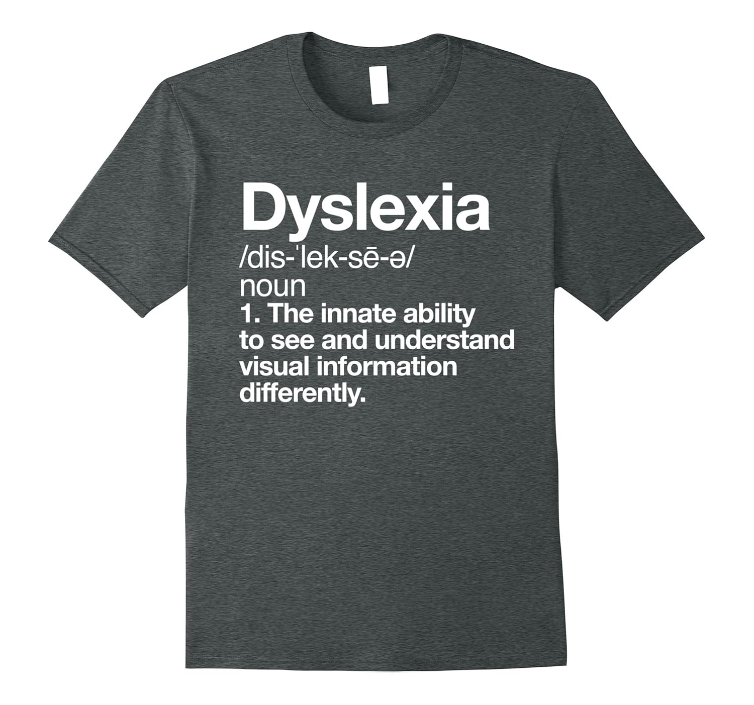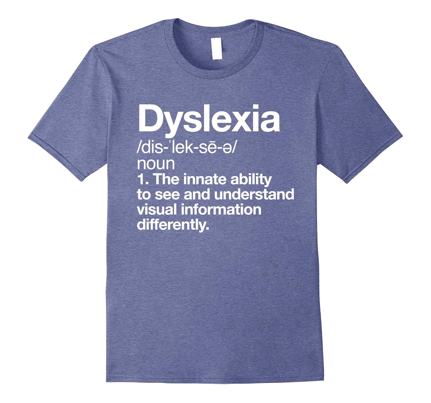 Solid colors: 100% Cotton; Heather Grey: 90% Cotton, 10% Polyester; All Other Heathers: 65% Cotton, 35% Polyester, Imported, Machine wash cold with like colors, dry low heat, This empowering and; cool dyslexia awareness tee is the perfect gift for showing support and love towards people that are dyslexic! Just because you have difficulty reading doesn”t mean you aren”t smart. Celebrate the beauty and magic of difference!, Featuring a clean, modernist typeface this positive dyslexia dictionary definition t-shirt shows off your courage, hope, strength and resilience. This dyslexic awareness tee was designed and printed to be fitted. For a more loose fit please order a size up, Lightweight, Classic fit, Double-needle sleeve and bottom hem