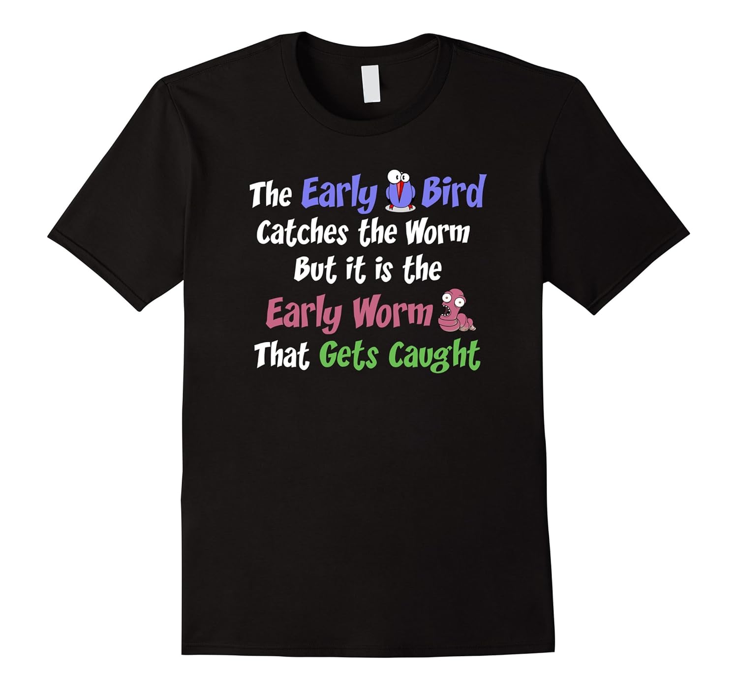 Solid colors: 100% Cotton; Heather Grey: 90% Cotton, 10% Polyester; All Other Heathers: 65% Cotton, 35% Polyester, Imported, Machine wash cold with like colors, dry low heat, This T-Shirt pokes fun at late risers and evening persons by saying: “The Early Bird Catches the Worm But It”s the Early Worm that Gets Caught”. Funny Tongue in Cheek T Shirt – perfect gift for anyone not a morning person. slumbersome, snoozy, somnolent, lethargic, inactive, sleepyhead, soporific, Lightweight, Classic fit, Double-needle sleeve and bottom hem