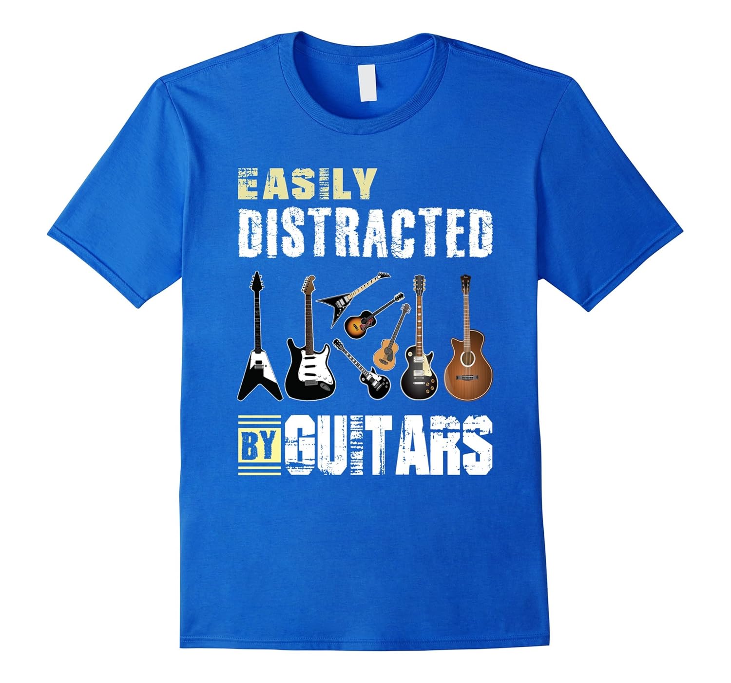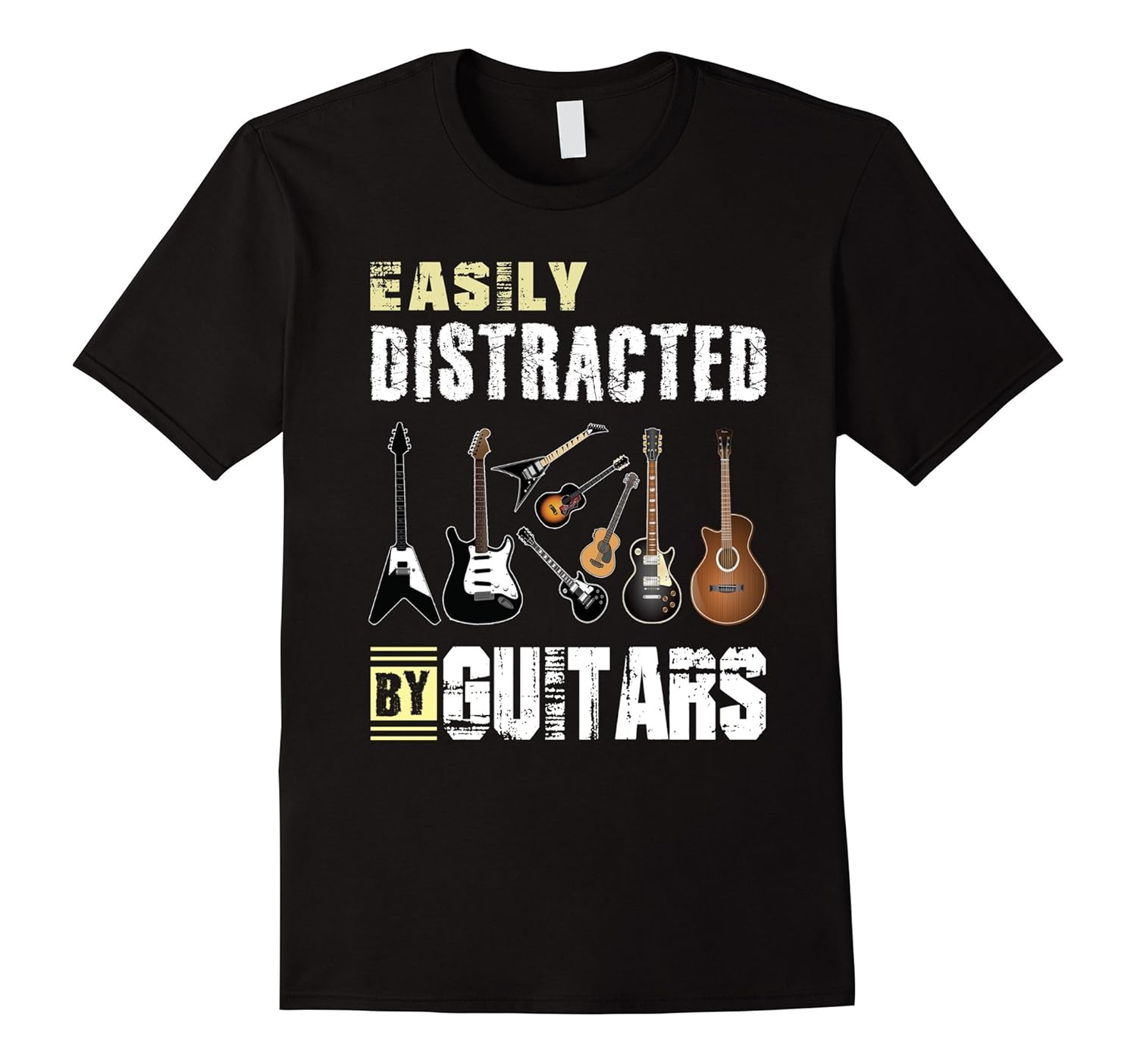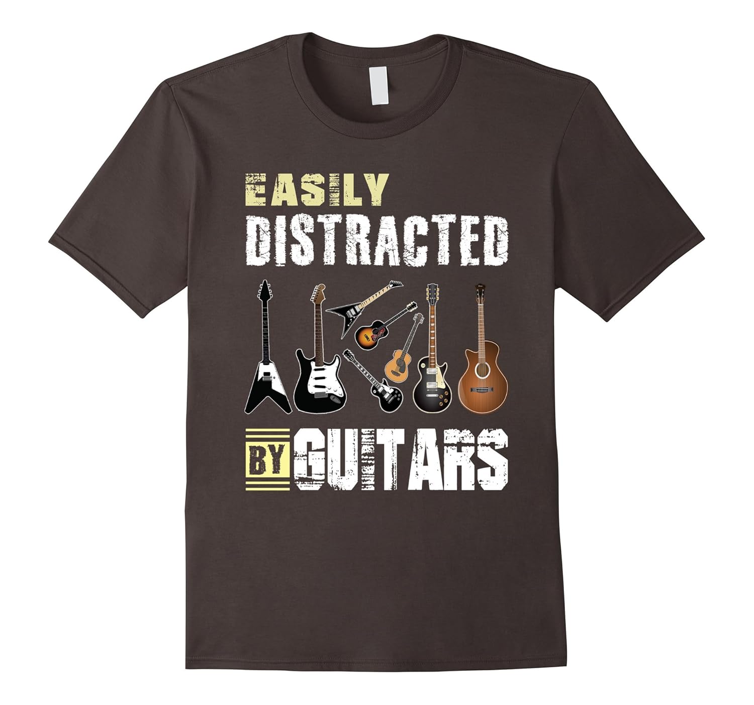 Solid colors: 100% Cotton; Heather Grey: 90% Cotton, 10% Polyester; All Other Heathers: 65% Cotton, 35% Polyester, Imported, Machine wash cold with like colors, dry low heat, Easily Distracted By Guitars T Shirt, I Love Guitar, Guitar Lovers, Guitar gift, Lightweight, Classic fit, Double-needle sleeve and bottom hem
