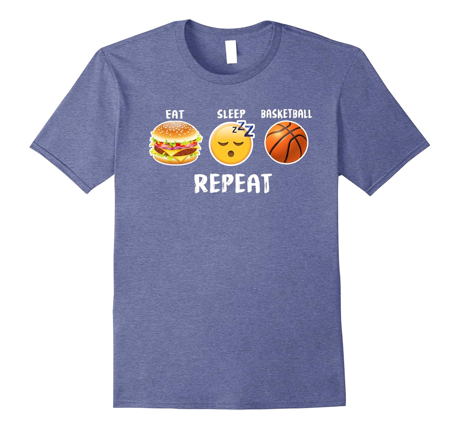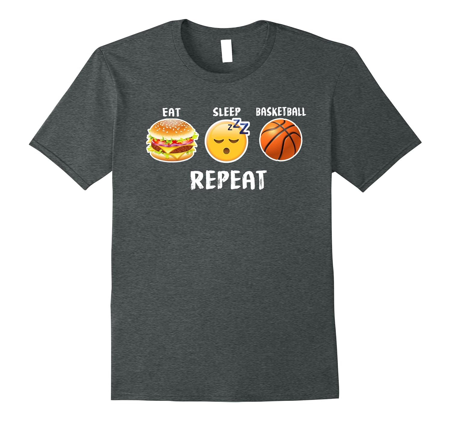 Solid colors: 100% Cotton; Heather Grey: 90% Cotton, 10% Polyester; All Other Heathers: 65% Cotton, 35% Polyester, Imported, Machine wash cold with like colors, dry low heat, Eat Sleep Basketball Repeat is a funny Basketball shirt that any player or fan who love basketball would appreciate Basketball quote shirts are always fun to wear, it is a great conversation starter as everybody watch basketball. Original and Unique design for Basketball Emoji Emoticons Graphic T Shirt. Great gift idea for basketball players, fans, basketball Mom Dad. Christmas gift idea for basketball coaches. If you are looking for basketball thing to impress, this shirt is it. Lightweight, Classic fit, Double-needle sleeve and bottom hem