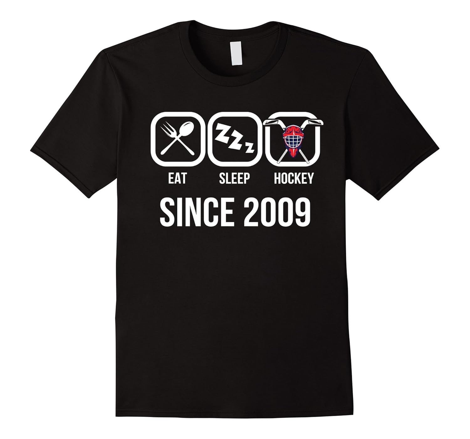 Solid colors: 100% Cotton; Heather Grey: 90% Cotton, 10% Polyester; All Other Heathers: 65% Cotton, 35% Polyester, Imported, Machine wash cold with like colors, dry low heat, Perfect Birthday Gift for people who are born in 2009 and loves hockey. Eat Sleep Hockey. Hockey Graphic Tee Shirt for Aged 8 years old bday. This shirt is great for people who eat, breathe and live for ice hockey, Premium Quality shirt looks great in five amazing color of your choices and also available different sizes for men women, him her mom dad, ladies girls boys teens, grandma and grandpa. Lightweight, Classic fit, Double-needle sleeve and bottom hem