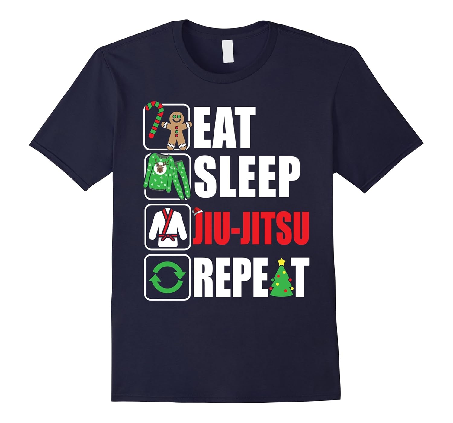 Solid colors: 100% Cotton; Heather Grey: 90% Cotton, 10% Polyester; All Other Heathers: 65% Cotton, 35% Polyester, Imported, Machine wash cold with like colors, dry low heat, Do you love jiu jitsu. If yes, this eat sleep jiu jitsu repeat funny merry xmas jiu jitsu tshirt will be an awesome gifts for you or jiu jitsu fan on this Christmas. This shirt can also be a great Christmas gift for men, women, boys and girls or kids, Imagine on Christmas, spending time with your family eating gingerbread, sleeping in family pajamas, jiu jitsu and repeating, that sounds like an awesome holiday time. Buy this super funny eat sleep jiu jitsu repeat tshirt, Lightweight, Classic fit, Double-needle sleeve and bottom hem