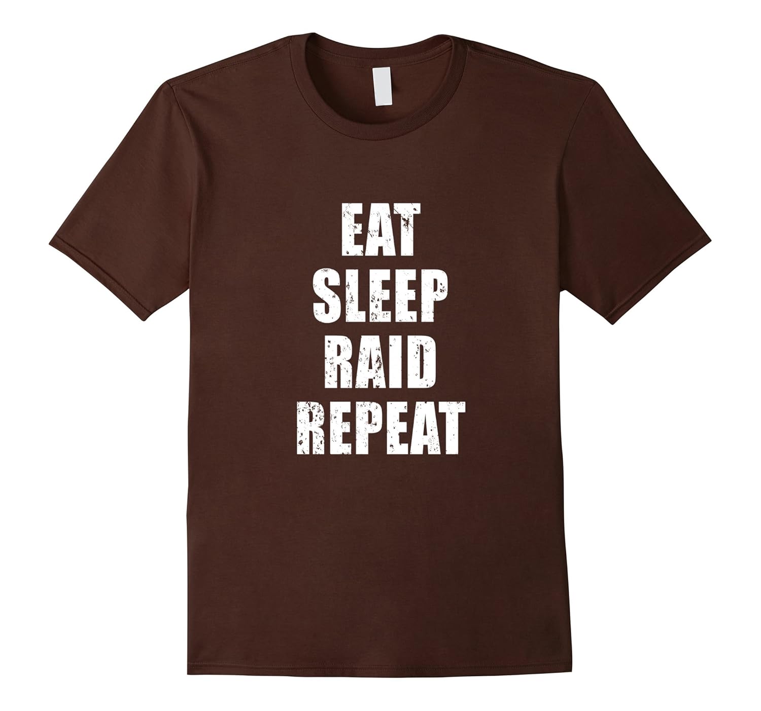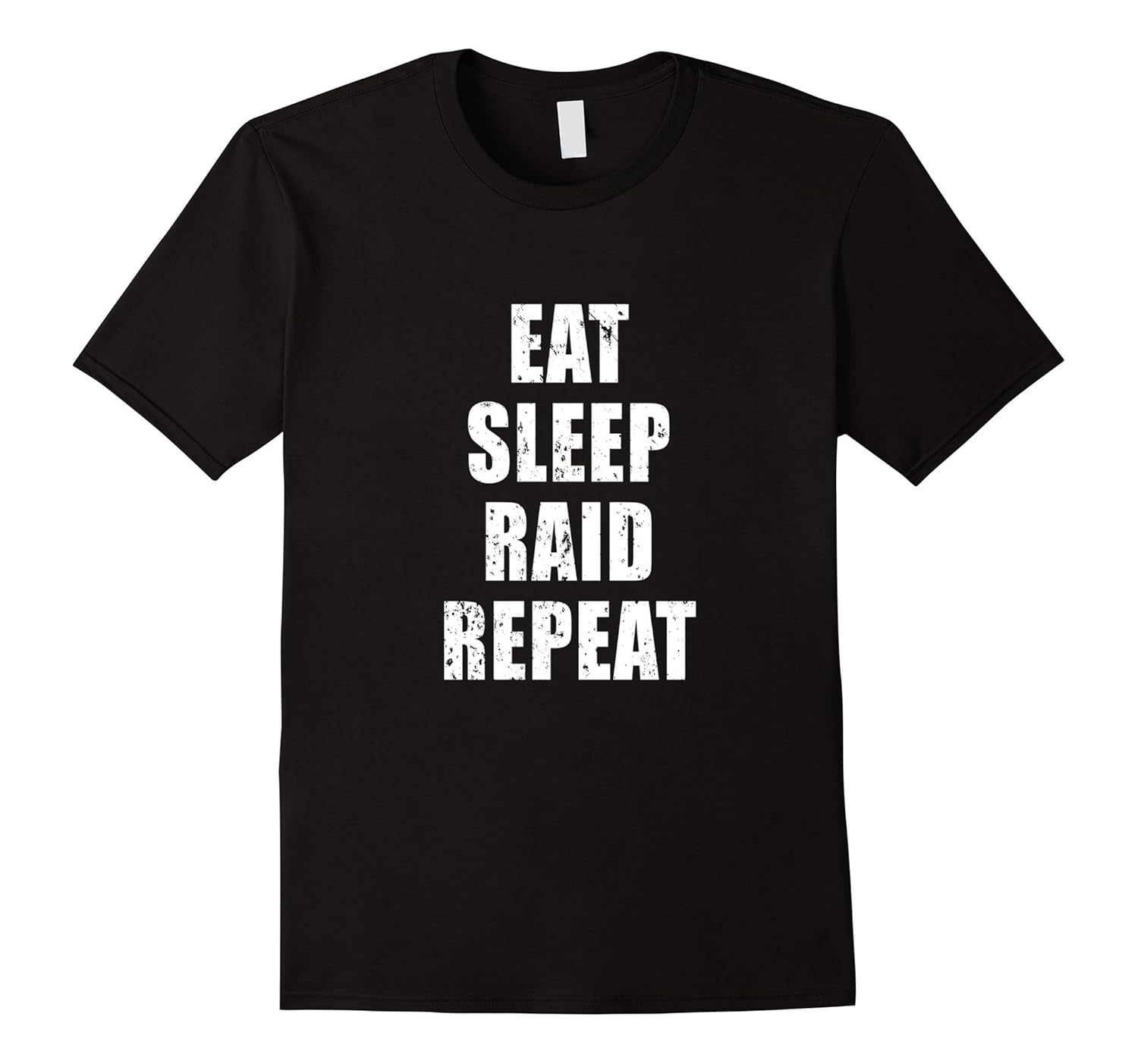 Solid colors: 100% Cotton; Heather Grey: 90% Cotton, 10% Polyester; All Other Heathers: 65% Cotton, 35% Polyester, Imported, Machine wash cold with like colors, dry low heat, This shirt says eat sleep raid repeat. It”s the perfect unique gift idea for a friend or family member, or any other special occasion. It”s a great matching family shirt – buy one for mom, dad, daughter, and son for family vacation, Consider purchasing this if you”re looking for tees related to funny pc gaming teeshirts where groups of people team up to take down digital beasts in mmorpg games that no one person could take down on their own. Do it for the epic loot – it”s raid time, Lightweight, Classic fit, Double-needle sleeve and bottom hem