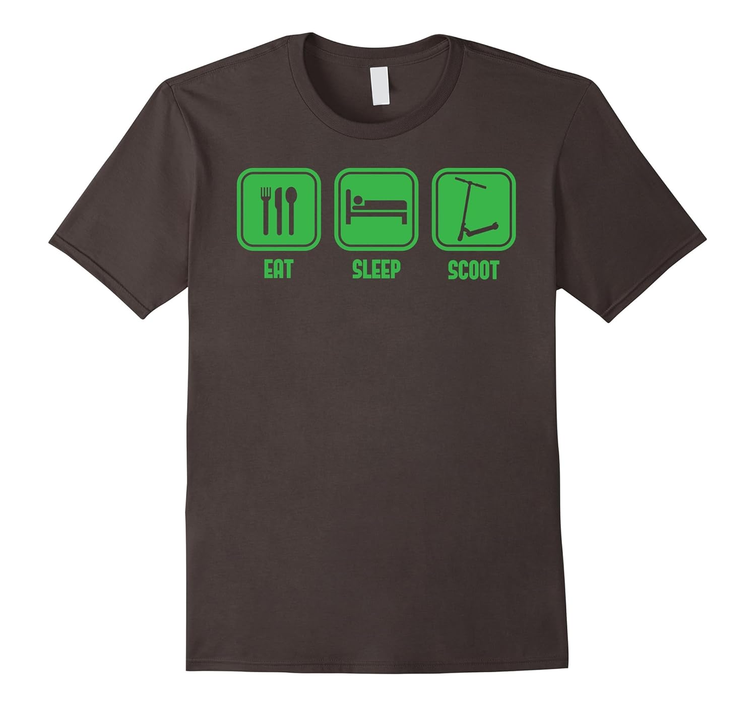 Solid colors: 100% Cotton; Heather Grey: 90% Cotton, 10% Polyester; All Other Heathers: 65% Cotton, 35% Polyester, Imported, Machine wash cold with like colors, dry low heat, Eat sleep scoot t-shirt with scooter graphic, Lightweight, Classic fit, Double-needle sleeve and bottom hem