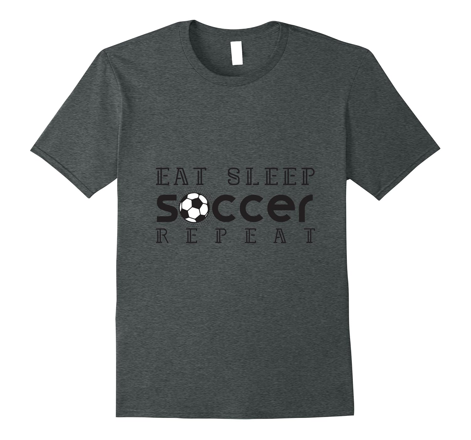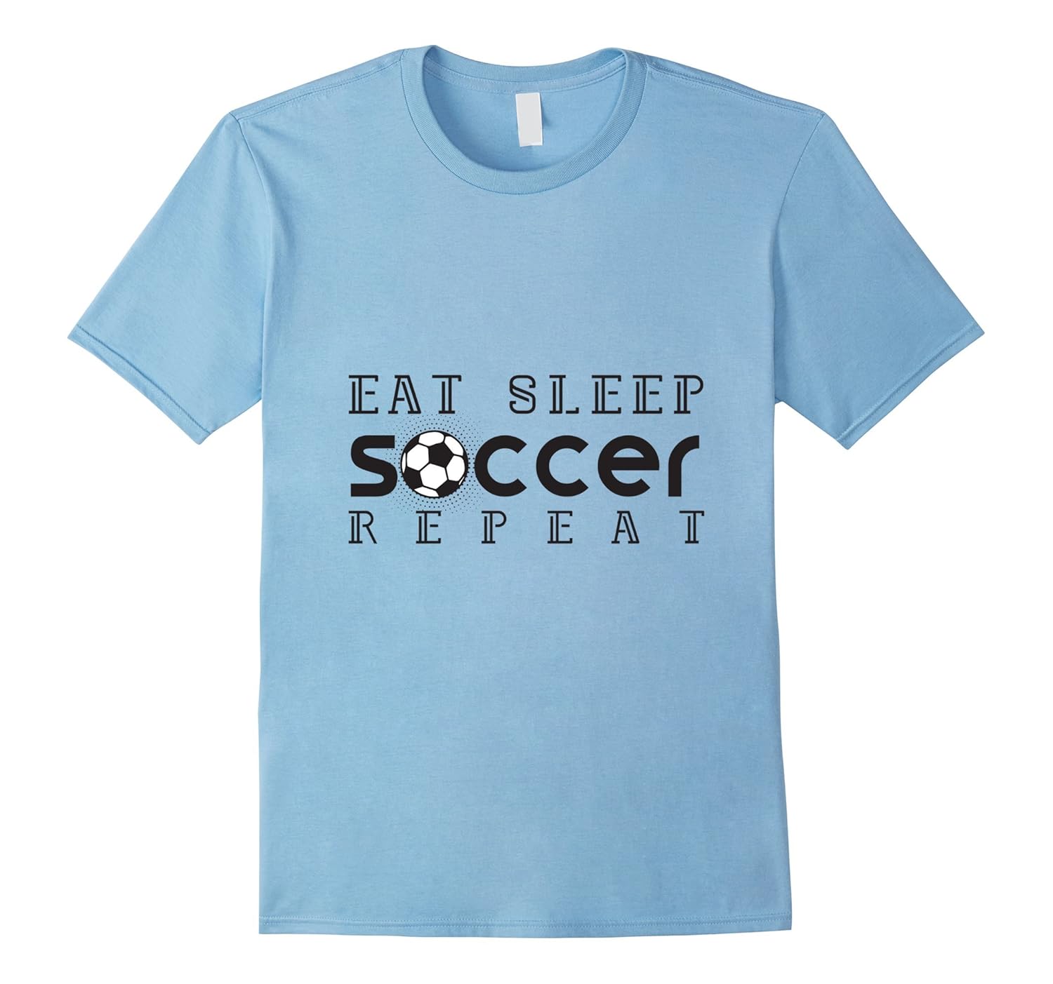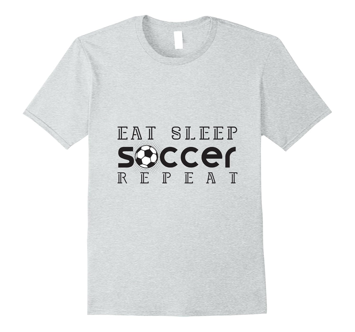 Solid colors: 100% Cotton; Heather Grey: 90% Cotton, 10% Polyester; All Other Heathers: 65% Cotton, 35% Polyester, Imported, Machine wash cold with like colors, dry low heat, Is all you do eat, sleep and play soccer. If so, this tee shirt is for you! Grab it as the perfect gift for any soccer player or soccer mom who loves to play soccer!, Eat Sleep Soccer Repeat T-Shirt Soccer Player Mom Tee is designed and printed to be fitted. For a more baggy fit, please order a size up. Lightweight, Classic fit, Double-needle sleeve and bottom hem
