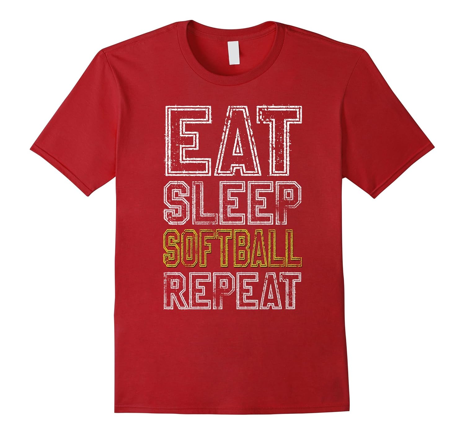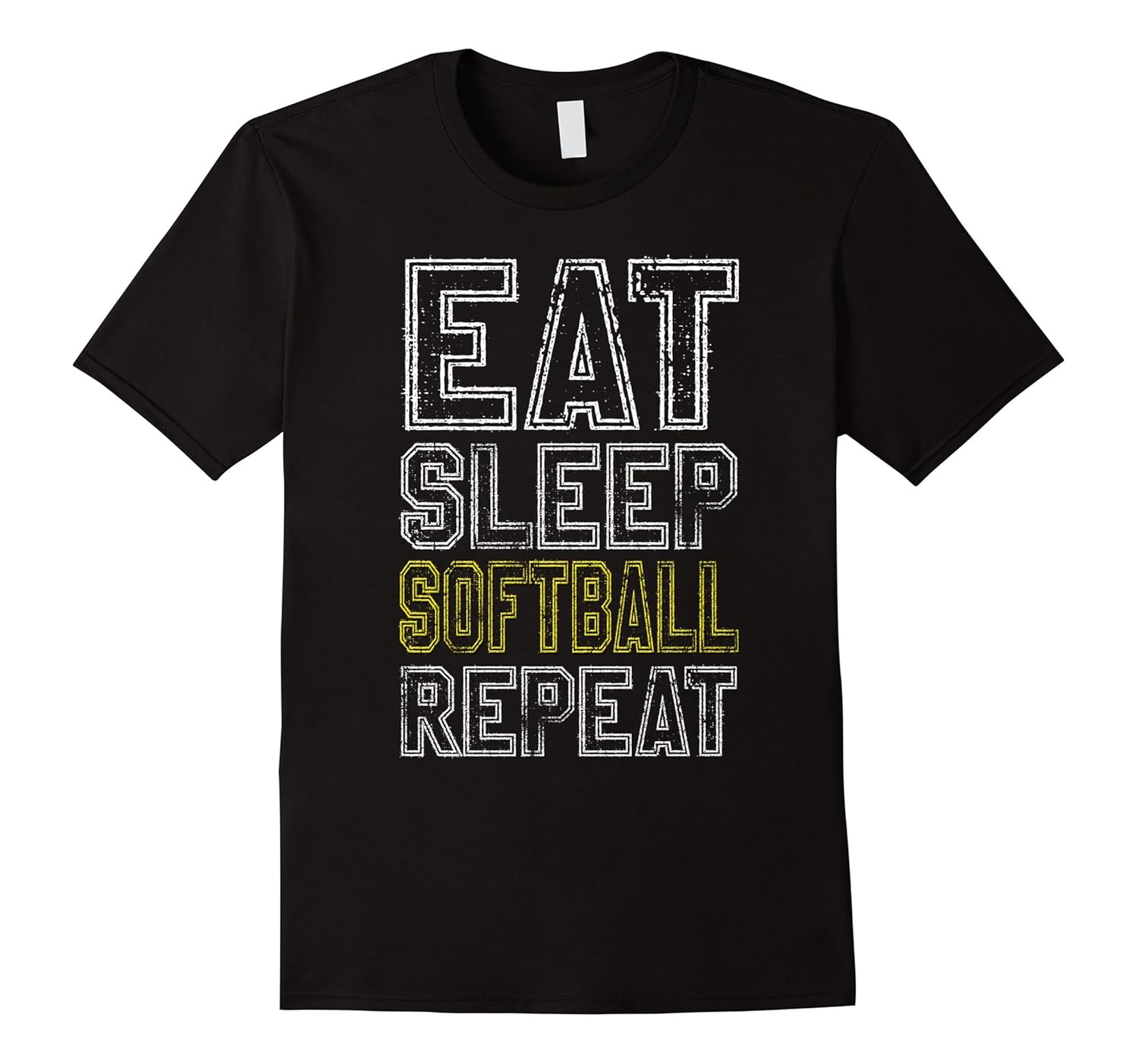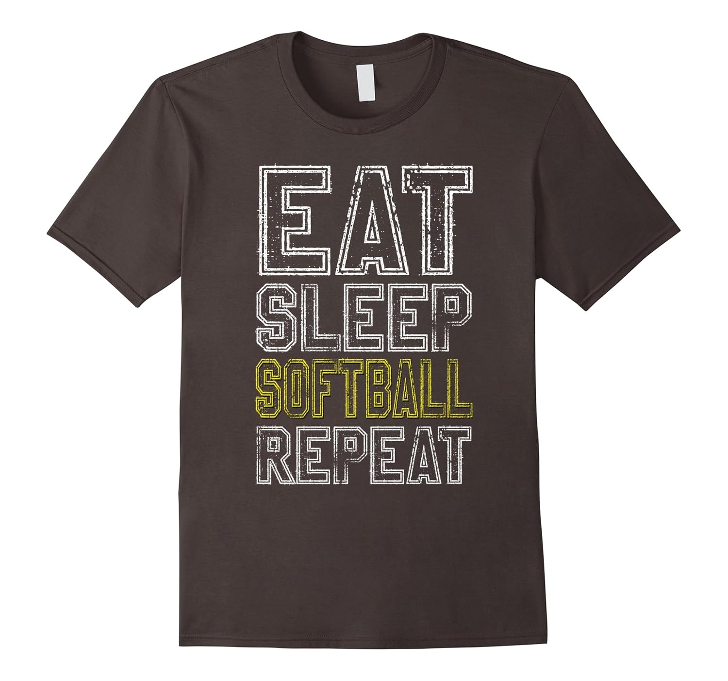 Solid colors: 100% Cotton; Heather Grey: 90% Cotton, 10% Polyester; All Other Heathers: 65% Cotton, 35% Polyester, Imported, Machine wash cold with like colors, dry low heat, Eat Sleep Softball Repeat training practice sport team play playing player quote textual saying cool gift ideas joke funny humor sarcastic shirts, Great Gift for Birthdays and christmas! Check more shirts in “Eat Sleep Repeat Apparel”, Lightweight, Classic fit, Double-needle sleeve and bottom hem